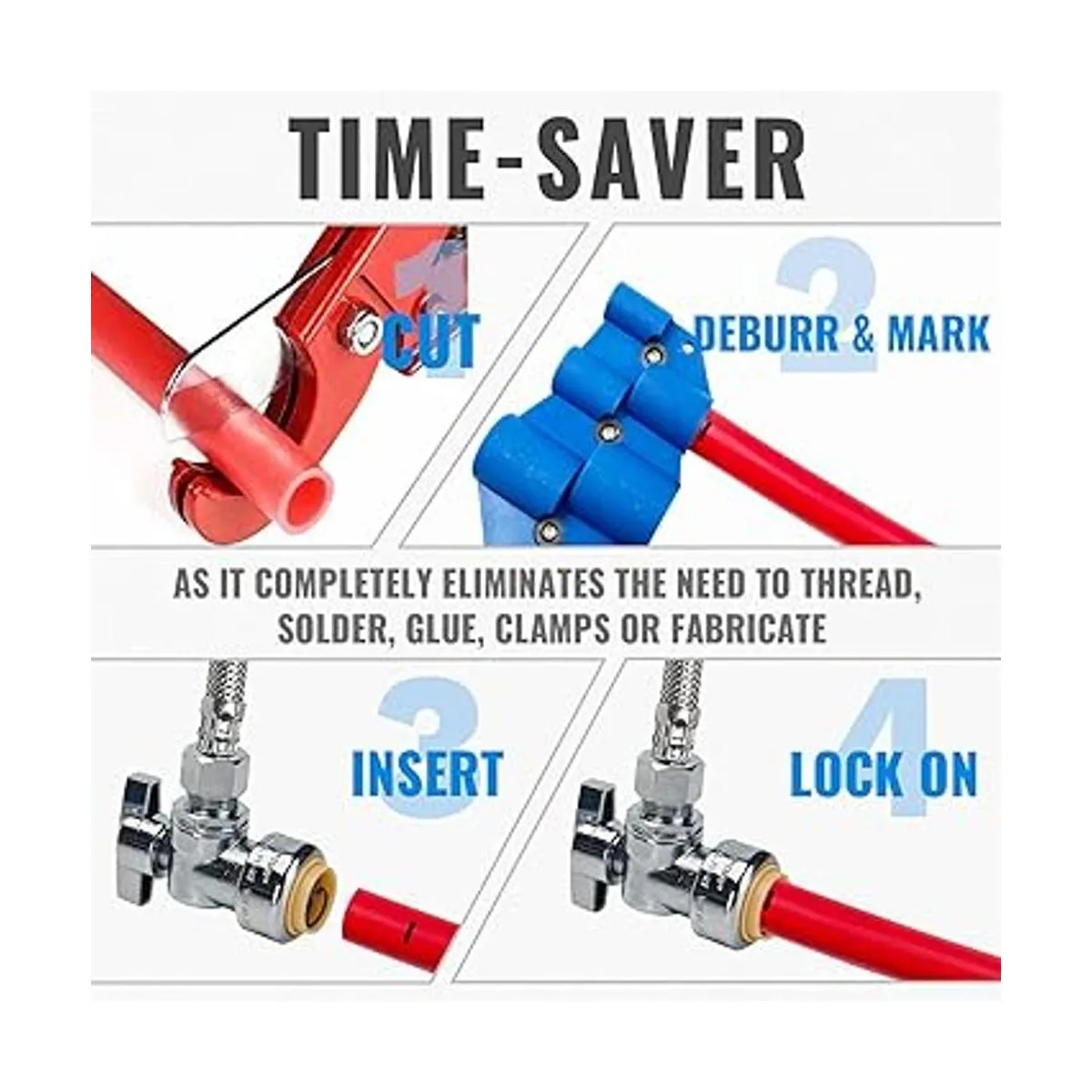 Fácil instalación sin soldadura: no requiere soldadura, abrazaderas o pegamento, simplemente inserta el tubo en el accesorio lo suficientemente profundo con las manos. Desconecta en segundos con el clip de desconexión. La válvula de tope de ángulo de empuje SUNGATOR es extraíble y reutilizable. Incluso se pueden girar después del montaje para facilitar la instalación en espacios reducidos.