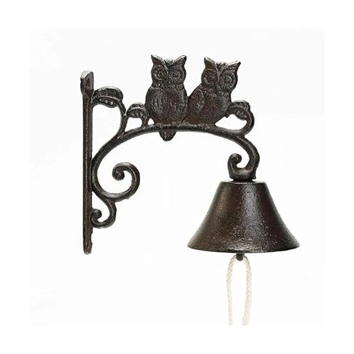 Sungmor Campana de pared de hierro fundido resistente, decorativa estilo retro, con bonito timbre de mano de búhos Timbre de pared para colgar manualmente Campana de cena para interiores y exteriores Decoración de pared para el hogar del jardín