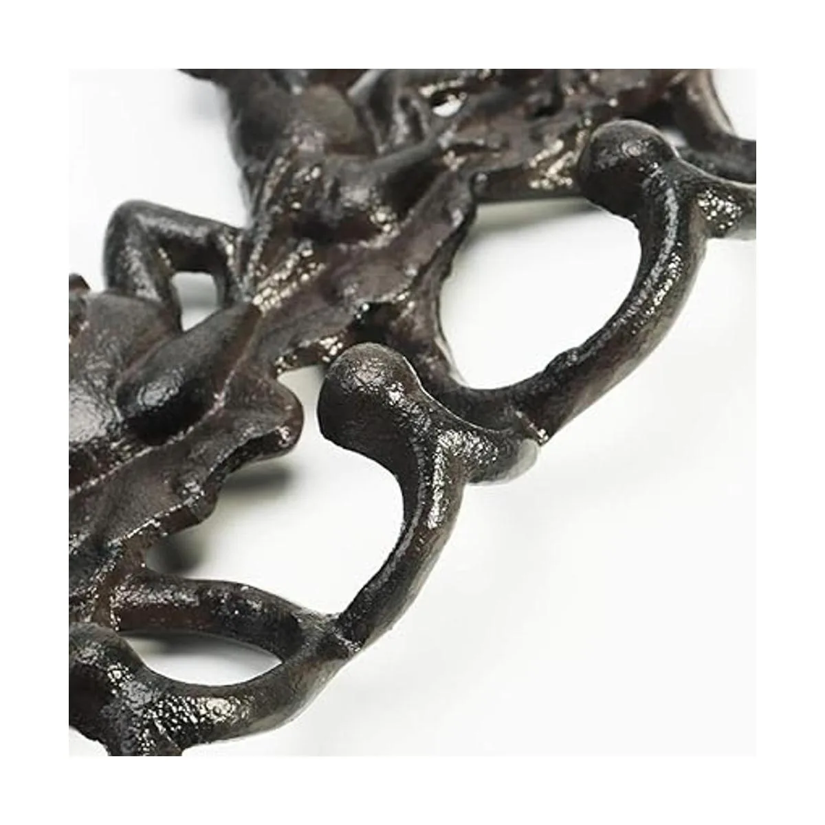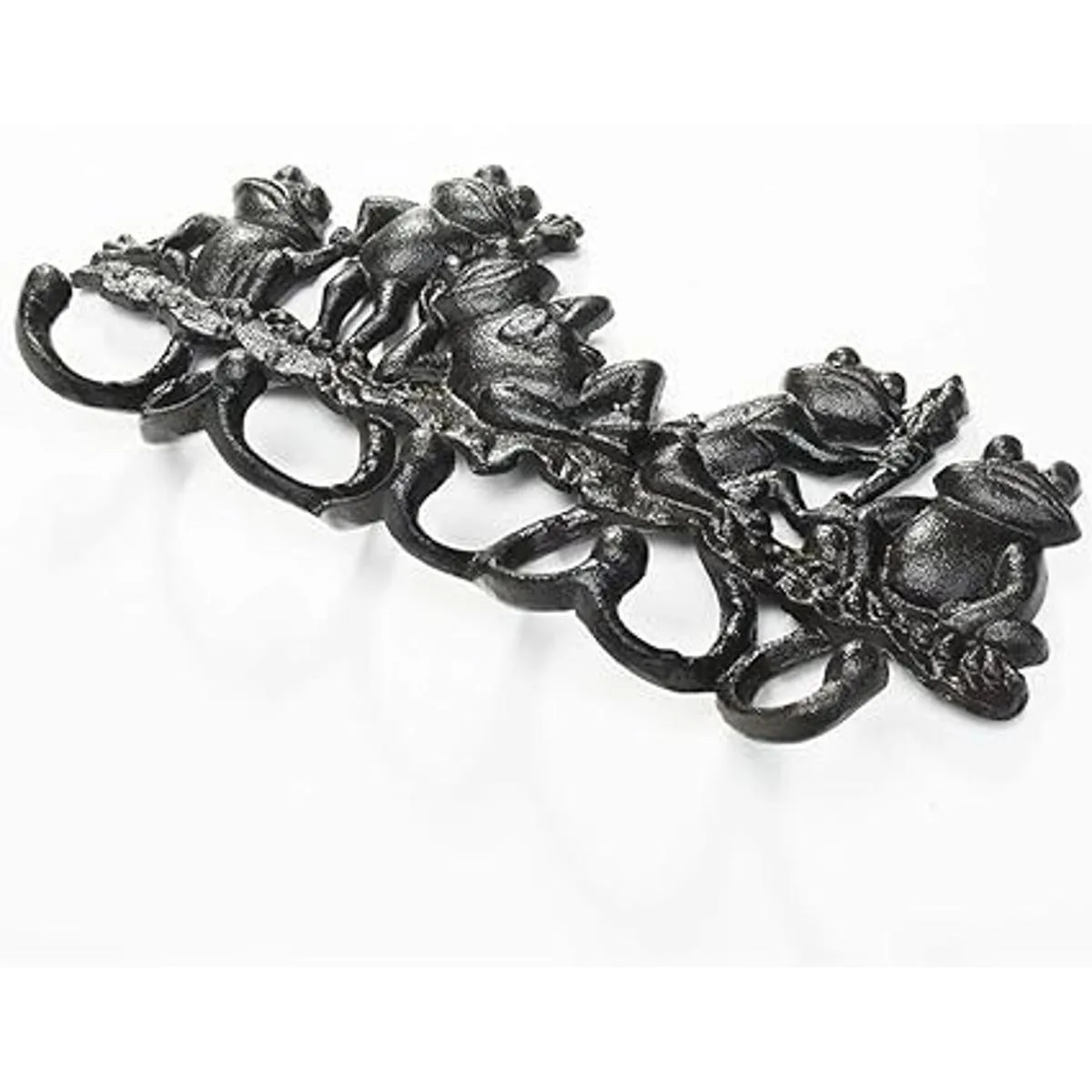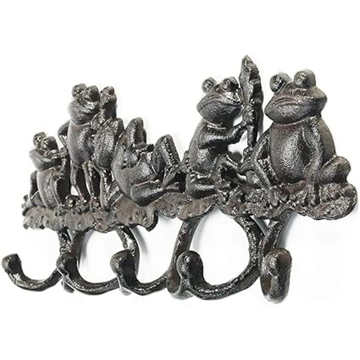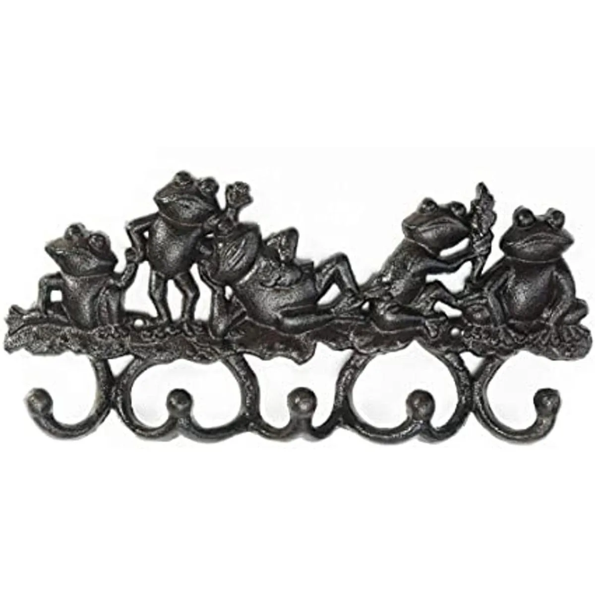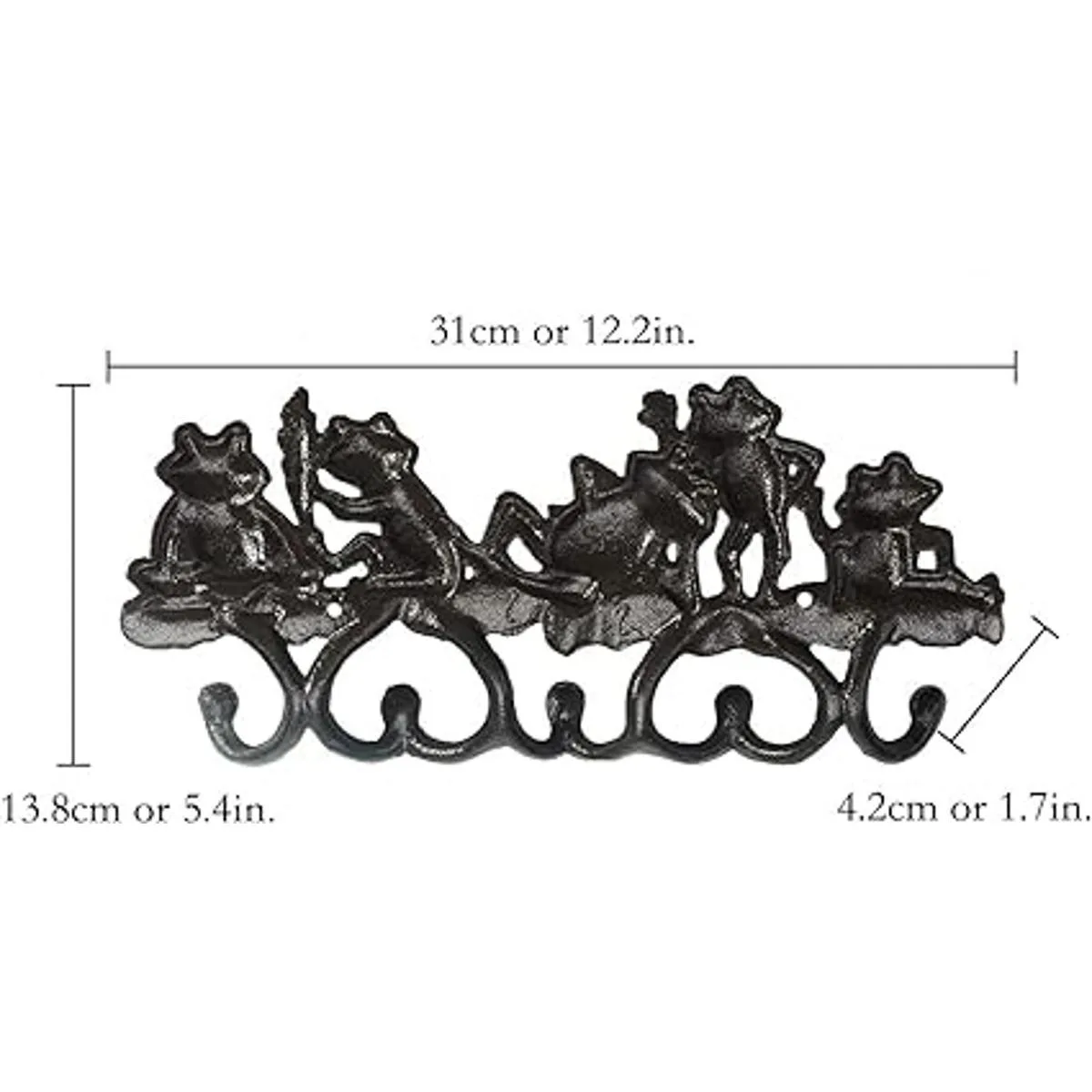 Sungmor Colgador de pared de hierro fundido con 5 ganchos, gancho decorativo para montar en la pared, bonito estante para colgar ranas, decoración de pared interior y exterior, excelente para herramientas manuales, macetas, abrigos, sombreros, llaves, ropa