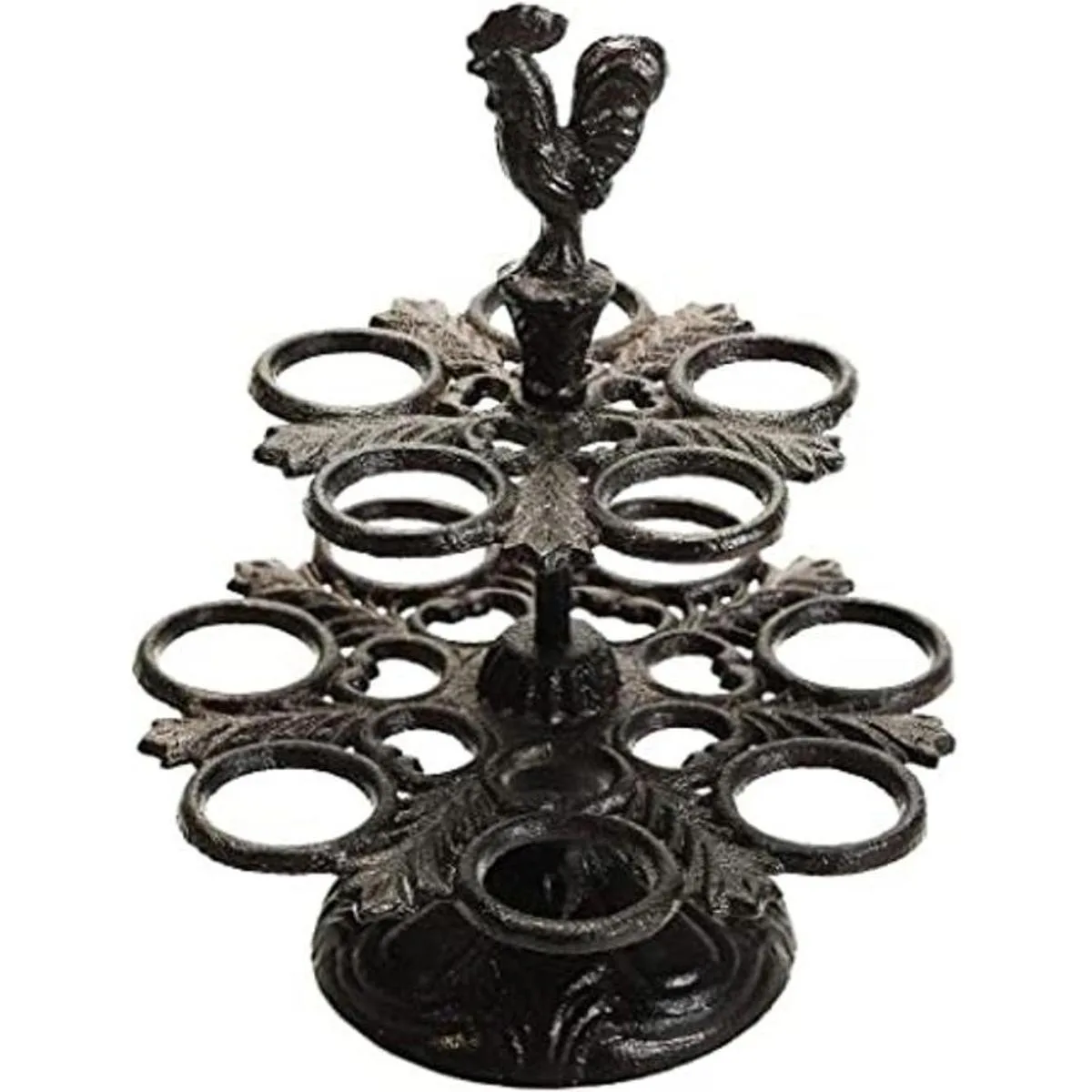 Sungmor Soporte de huevos de hierro fundido resistente para decoración de encimera, organizador de cocina y comedor, estante de exhibición de huevos Color marrón oscuro vintage y diseño en forma de gallo, capacidad de retención de 12 huevos