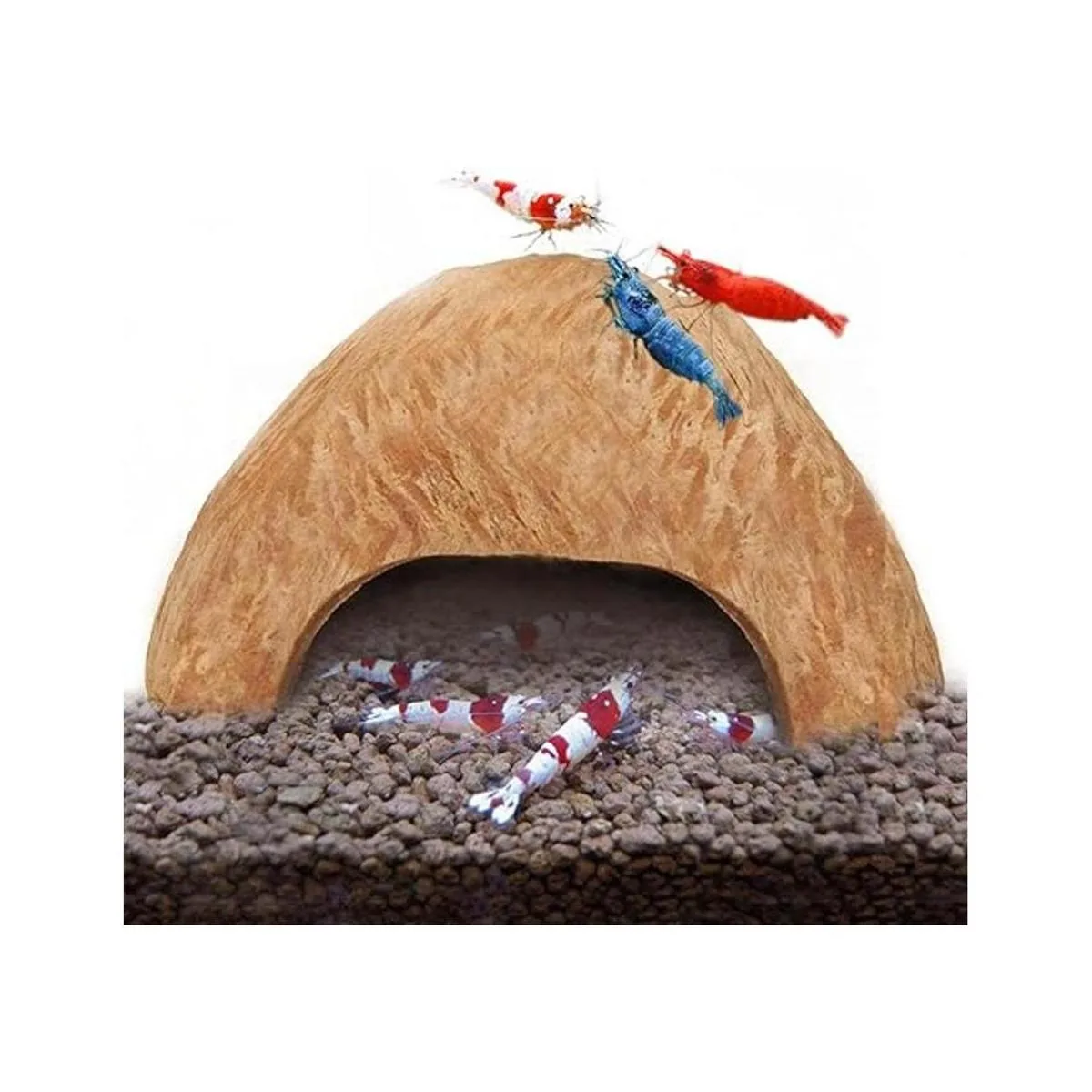 Tamaño ideal para camarones: no demasiado grande ni demasiado pequeño, la cueva de camarones SunGrow Coco de 5 pulgadas de ancho por 3 pulgadas de alto es lo suficientemente espaciosa para jugar, pero lo suficientemente privada para que tu amano, fantasma o camarón enano duerma, esconda o desove.
