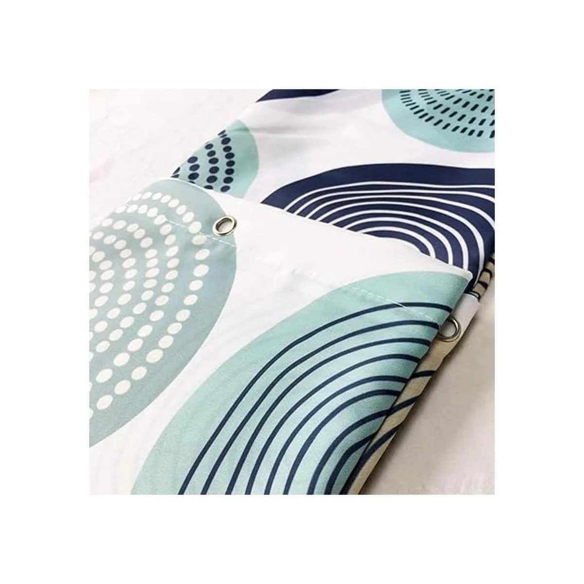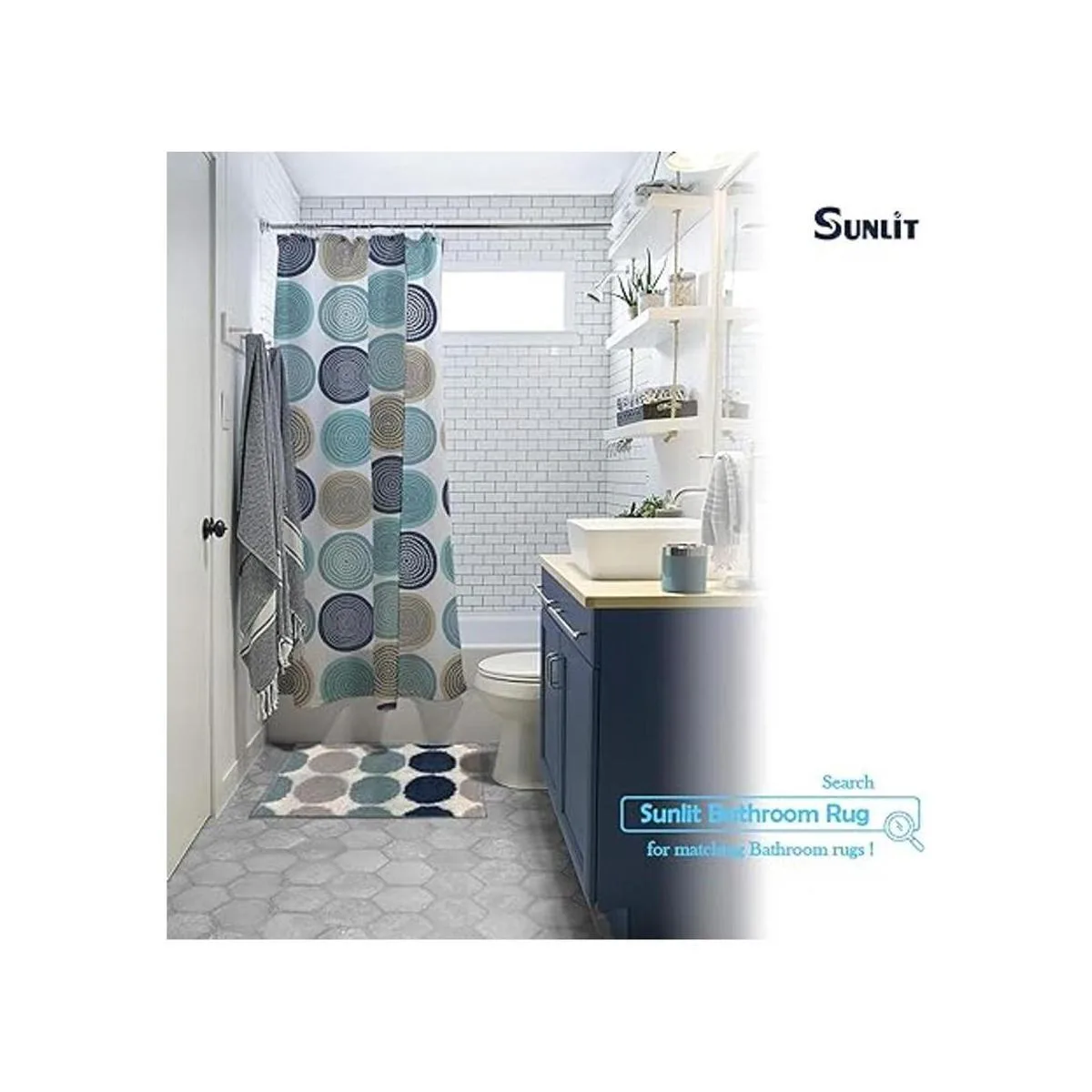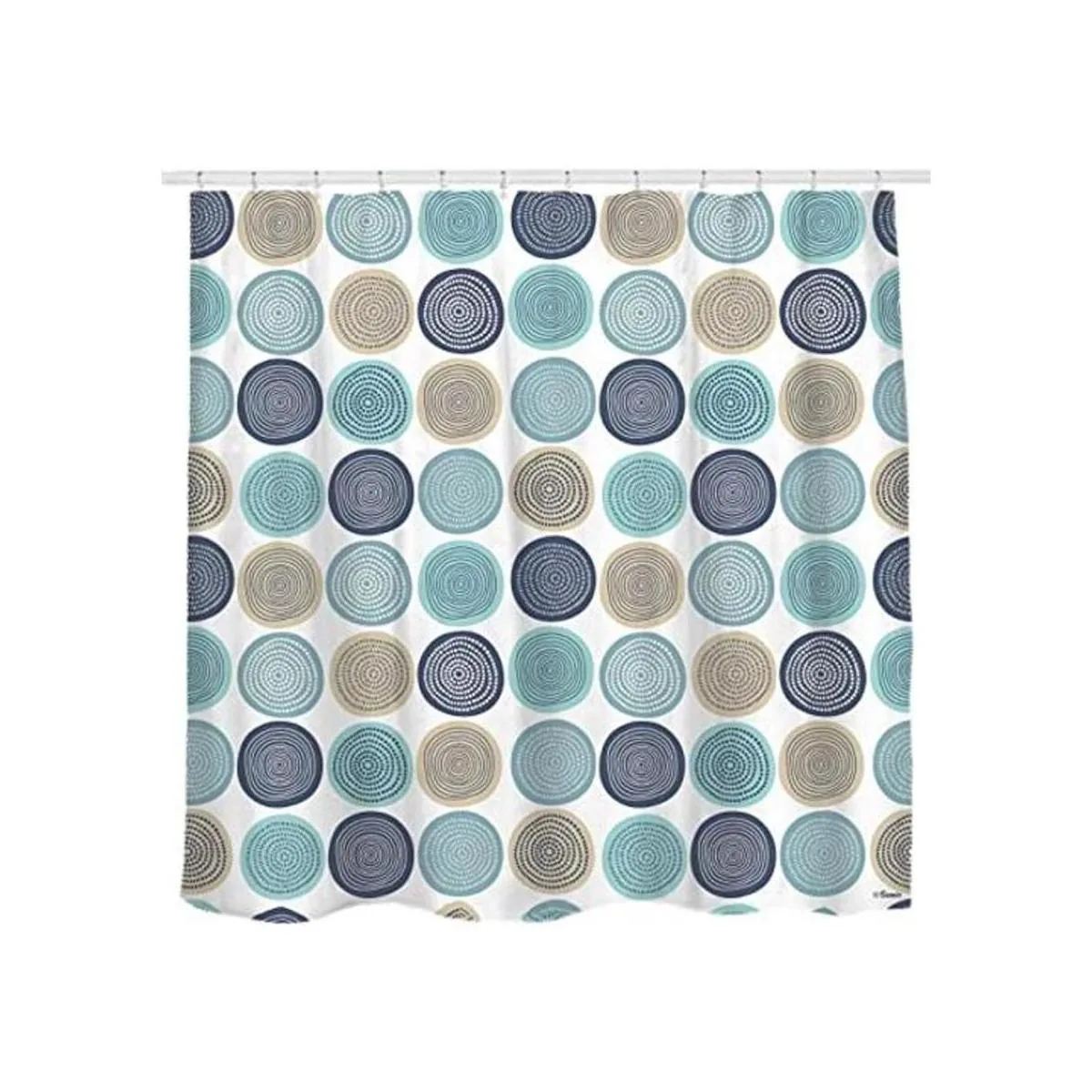 Sunlit Cortina de ducha de tela artística de madera con anillos abstractos, color azul claro, verde azulado, beige, marrón claro