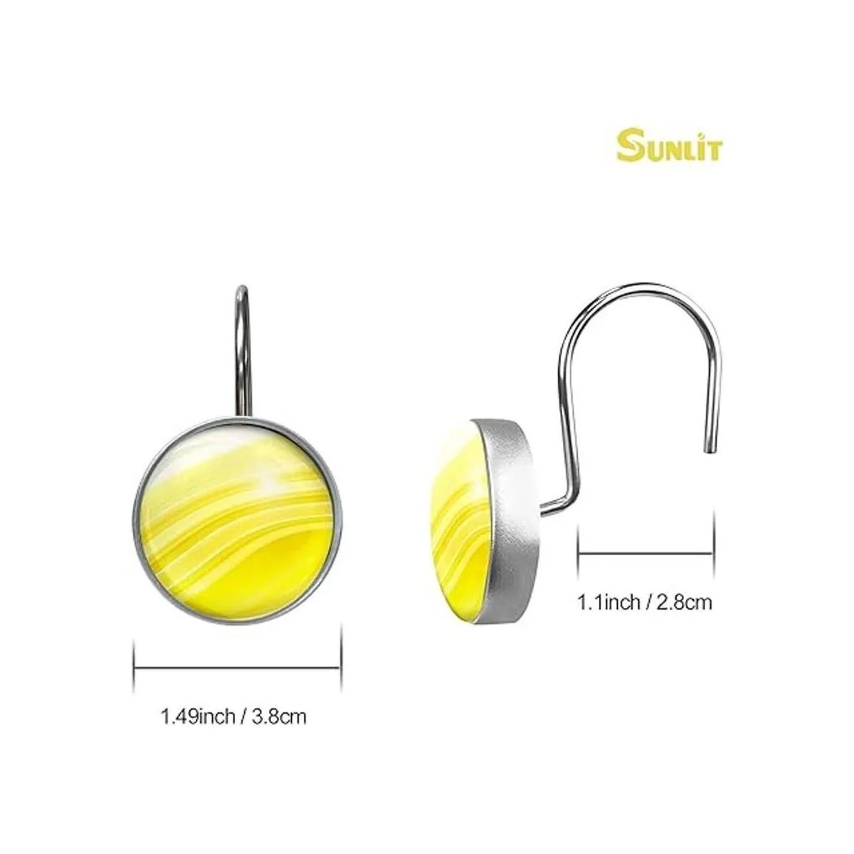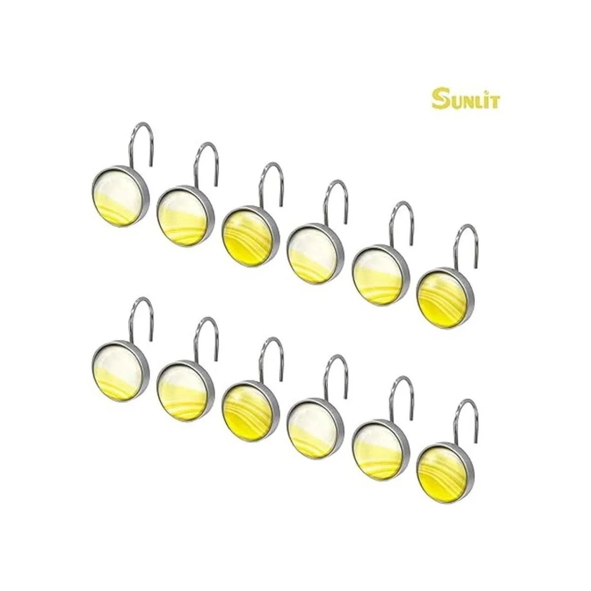 Sunlit Ganchos decorativos redondos de cristal para cortina de ducha, anillos de cortina de ducha de metal aceitado a prueba de óxido, paquete de 12, color amarillo degradado
