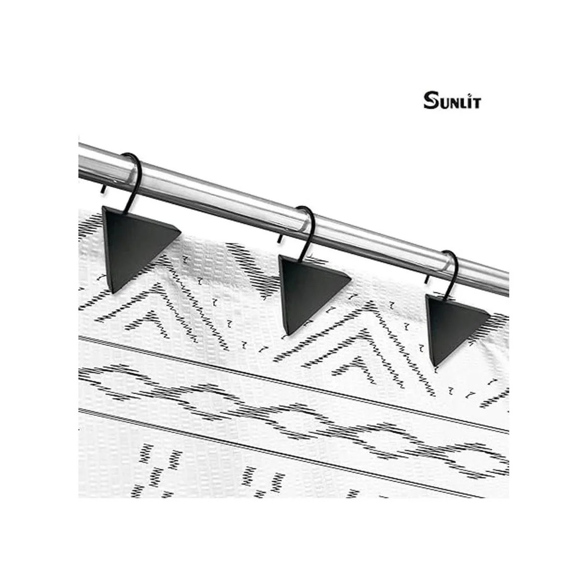 Sunlit Ganchos geométricos decorativos para cortina de ducha, anillos geométricos de cortina de ducha negros, resina, decoración de baño, ganchos bohemios, paquete de 12