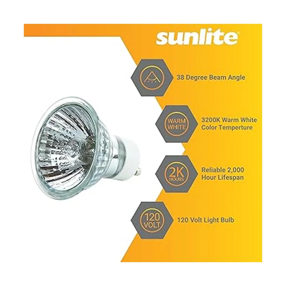 Sunlite 40712 MR16 Bombilla reflectora halógena, 35 W, 38 de inundación, 120 voltios, 2000 horas de vida útil, regulable, GU10 base, protector de cubierta, 3200, ANSI FMW, accesorios de techo, iluminación de pista, paquete de 6