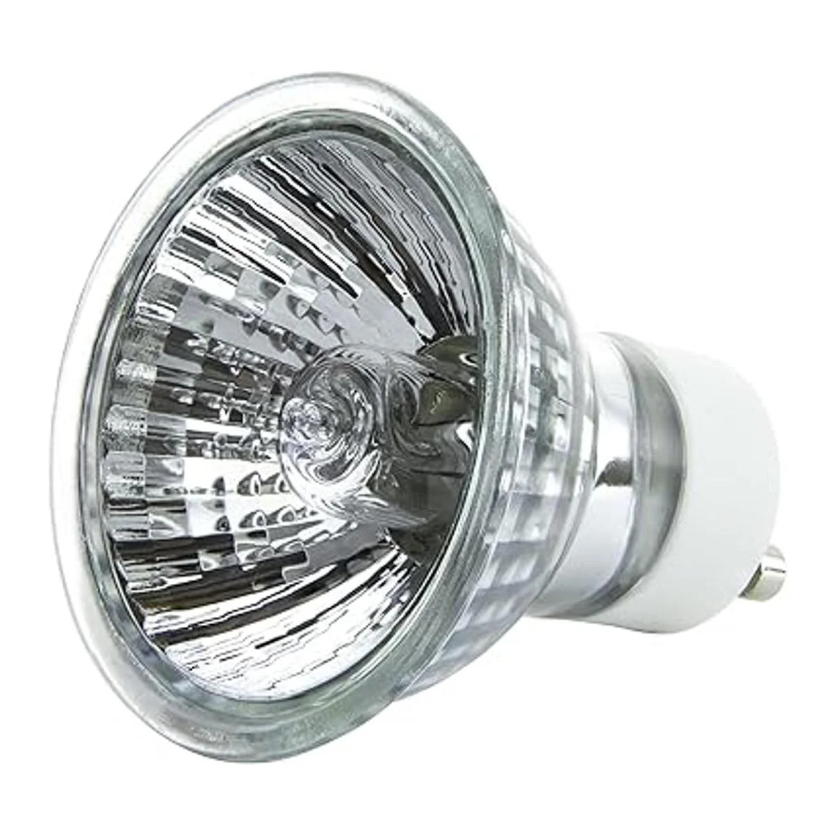Lámparas MR16: estas bombillas halógenas de 35 vatios cuentan con protector de cubierta y reflector prismático.
