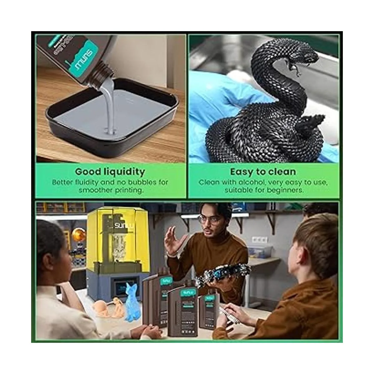 SUNLU Resina de impresora 3D similar a ABS de 4.4 lbs, fotopolímero de curado UV de 405 nm, resina 3D rápida para impresoras 3D 2K 4K 6K 8K, LCDDLPSLA, no frágil y de alta precisión y bajo encogimiento, 70.55 oz, gris oscuro