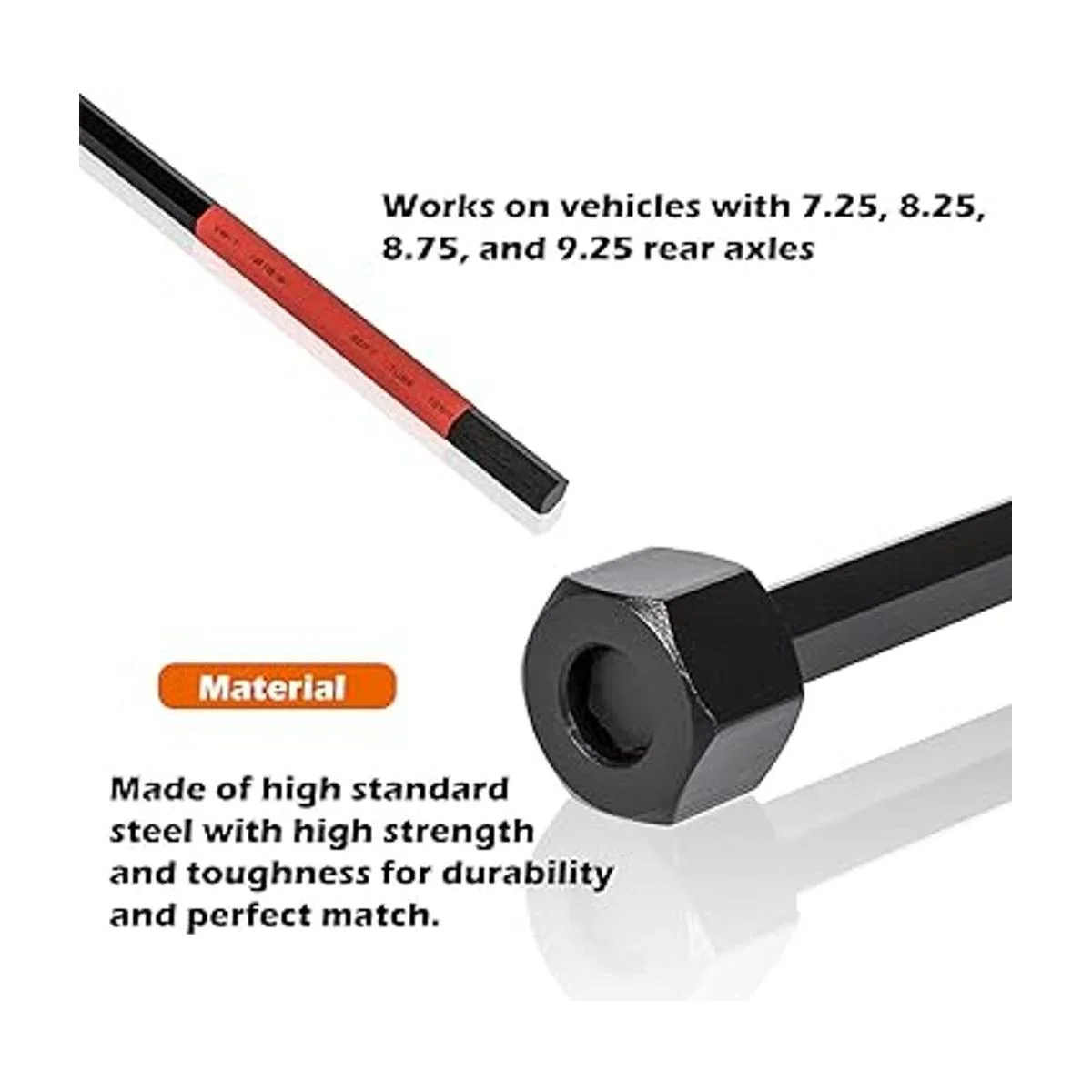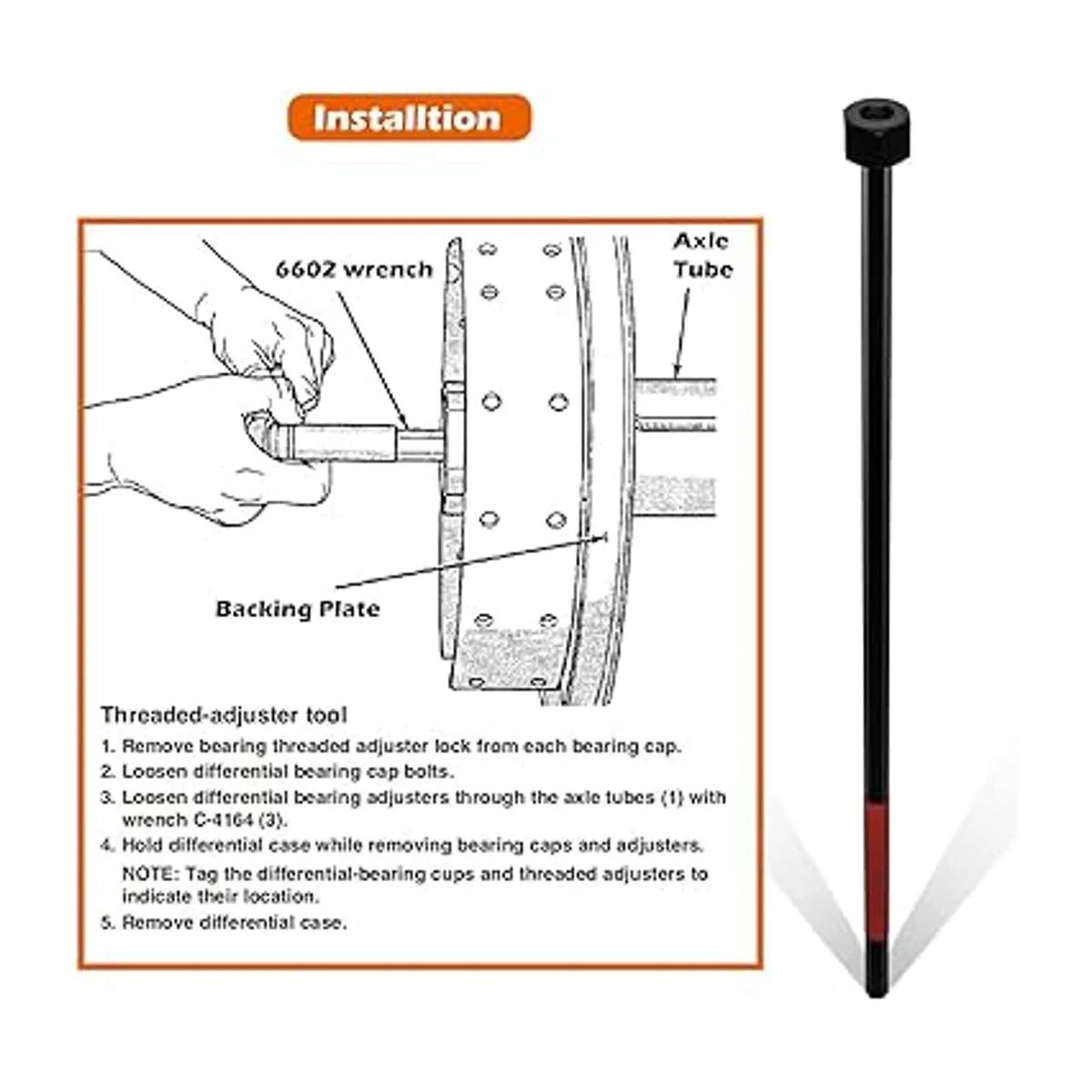 Características: repuesto para Miller C4164. Se ajusta perfectamente dentro del tubo del eje para acceder a los ajustadores roscados con un diseño elegante, y hay aproximadamente 6 pulgadas de termorretráctil en el extremo de la llave que protege el sello de aceite y el rodamiento de la rueda de daños cuando se utiliza.
