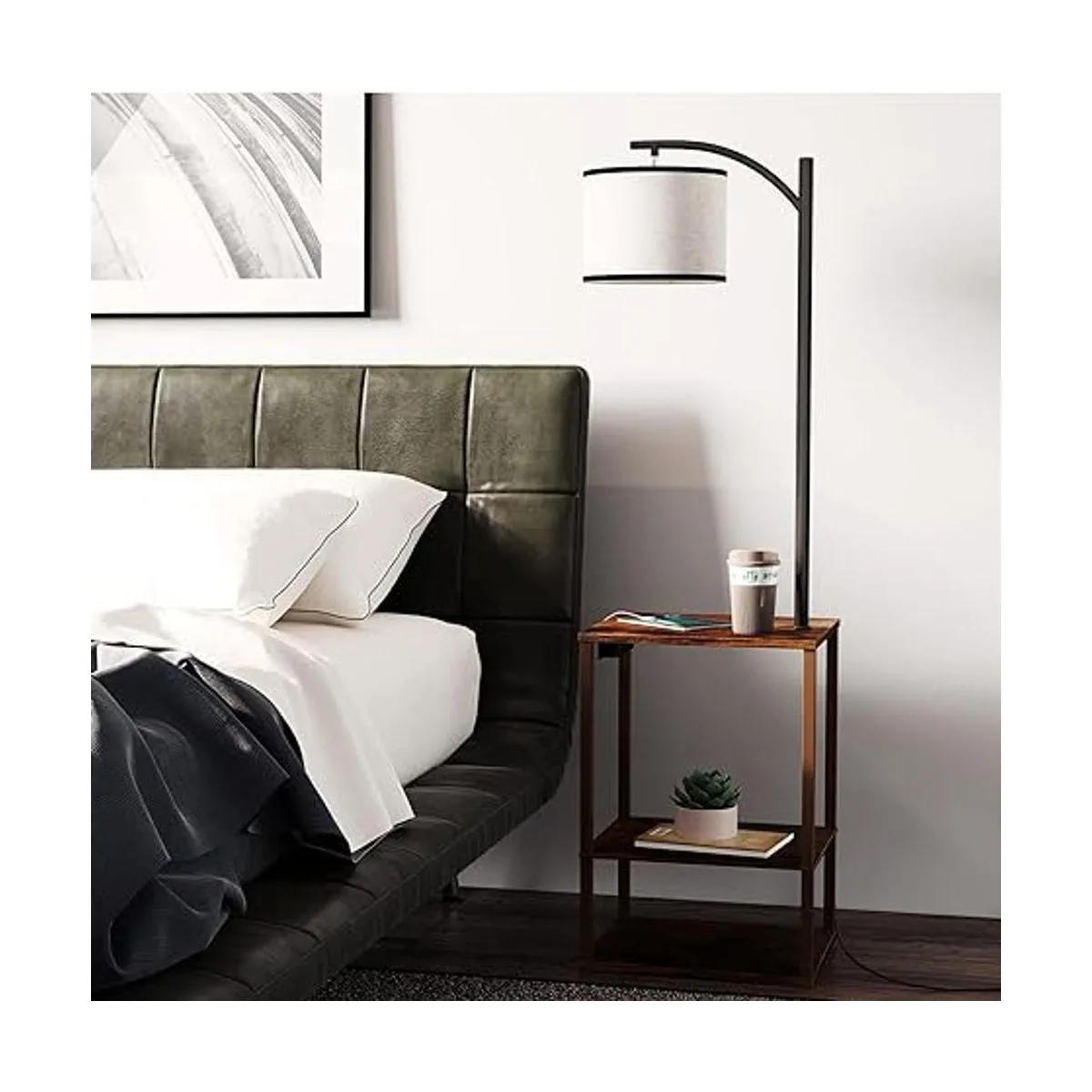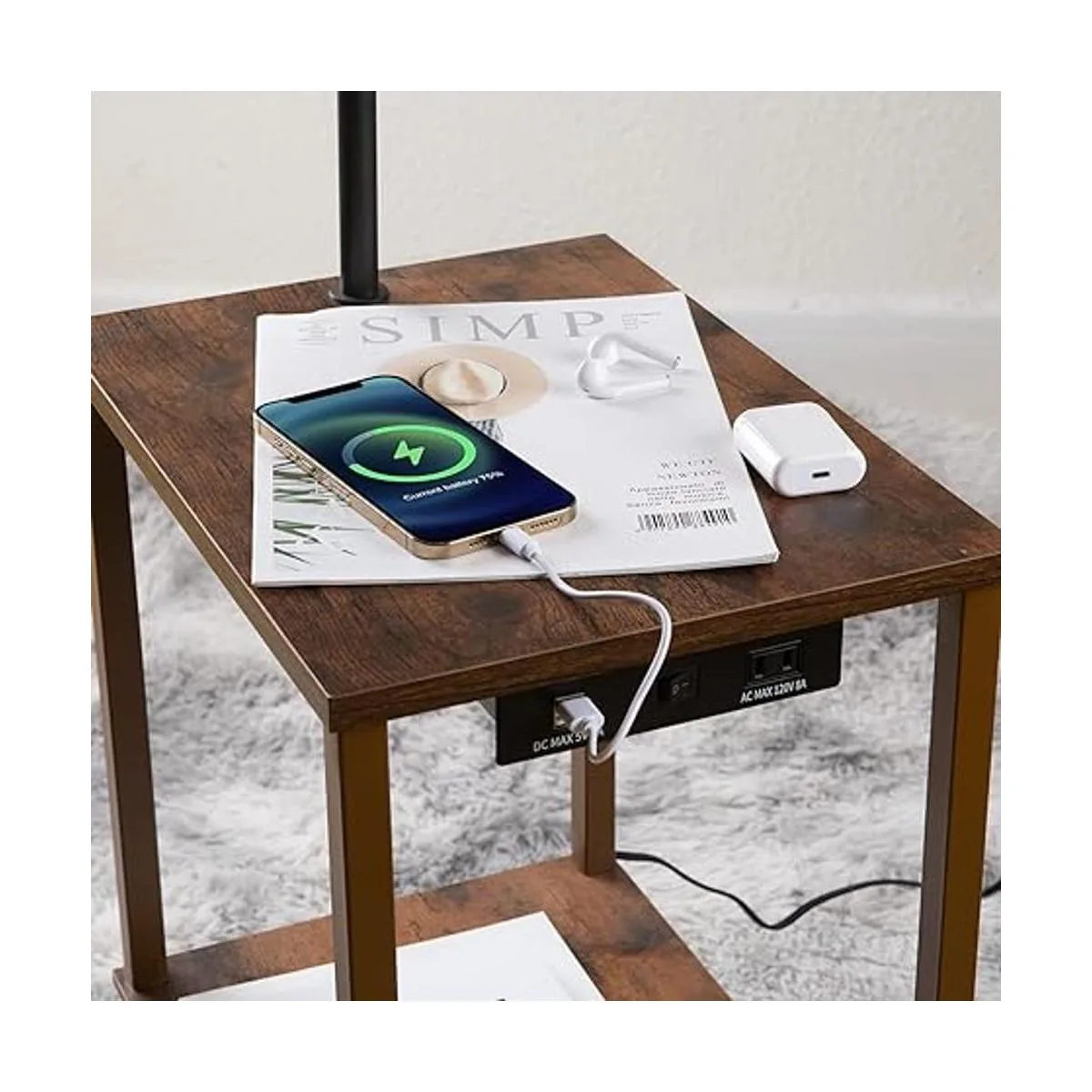 SUNMORY Lámpara de pie con mesa, lámparas para sala de estar con estación de carga puerto USB y CA, lámpara de mesa auxiliar rústica con estantes y bombilla LED de temperatura de 3 colores, mesa de lámpara para sala de estar, dormitorio marrón