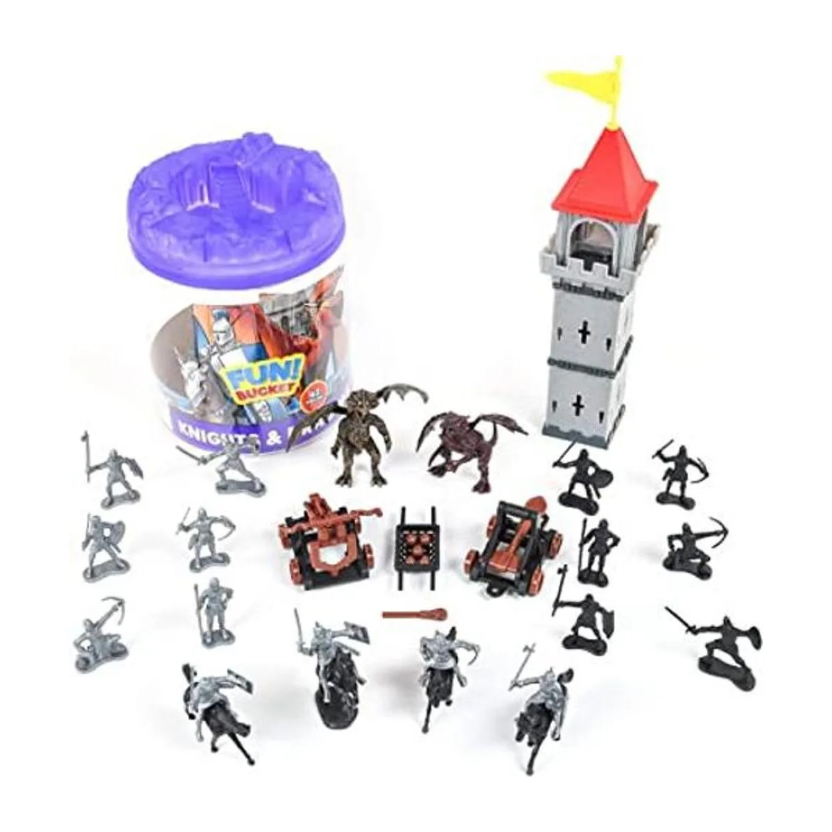 Sunny Days Entertainment Figuras de caballeros y dragones en cubo, 42 soldados surtidos y accesorios, juego de juguetes para niños, niños y niñas, figuras de fantasía de plástico con contenedor de almacenamiento