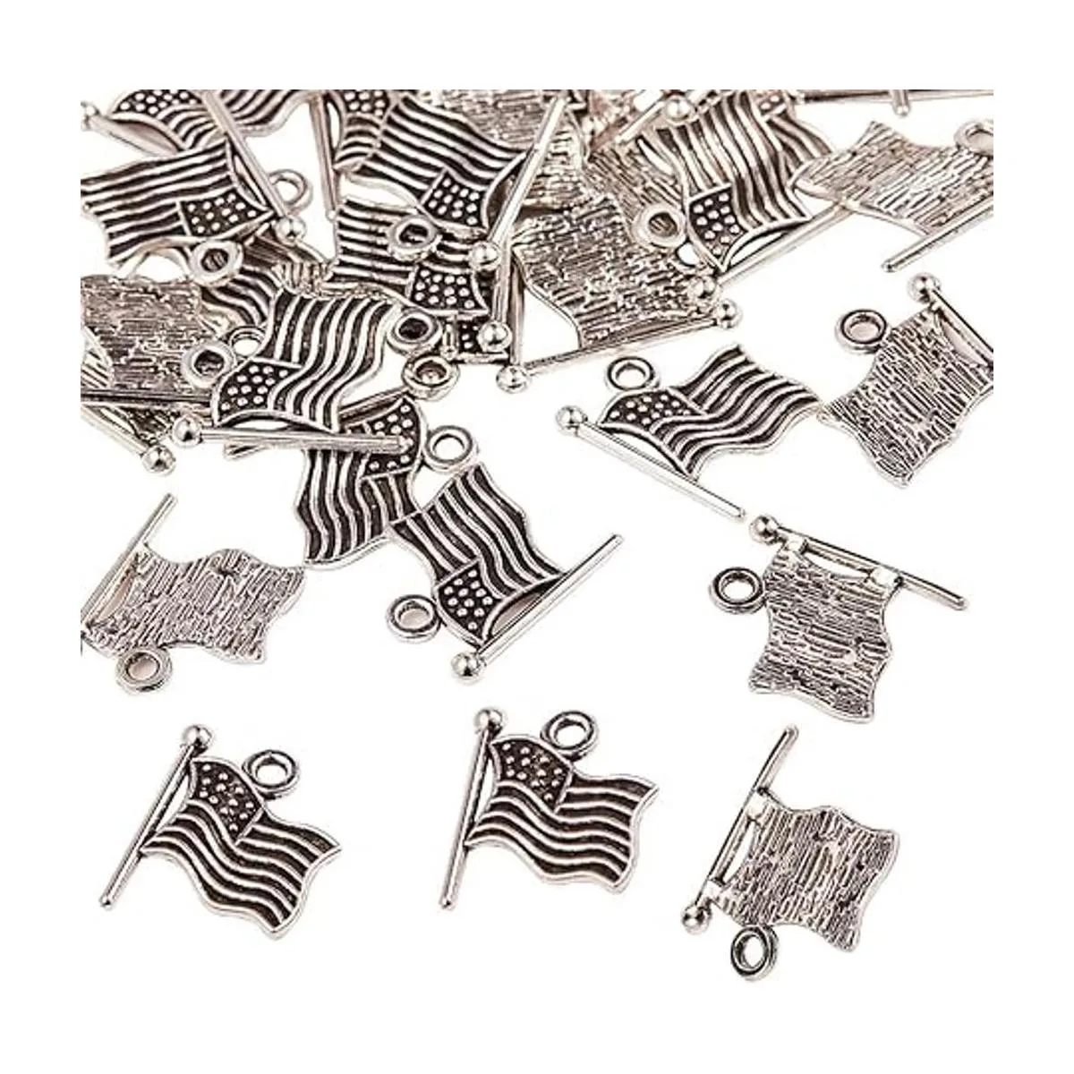 Material: los dijes de bandera estadounidense están hechos de aleación, material duradero y se pueden usar a largo plazo. Color: plata antigua.