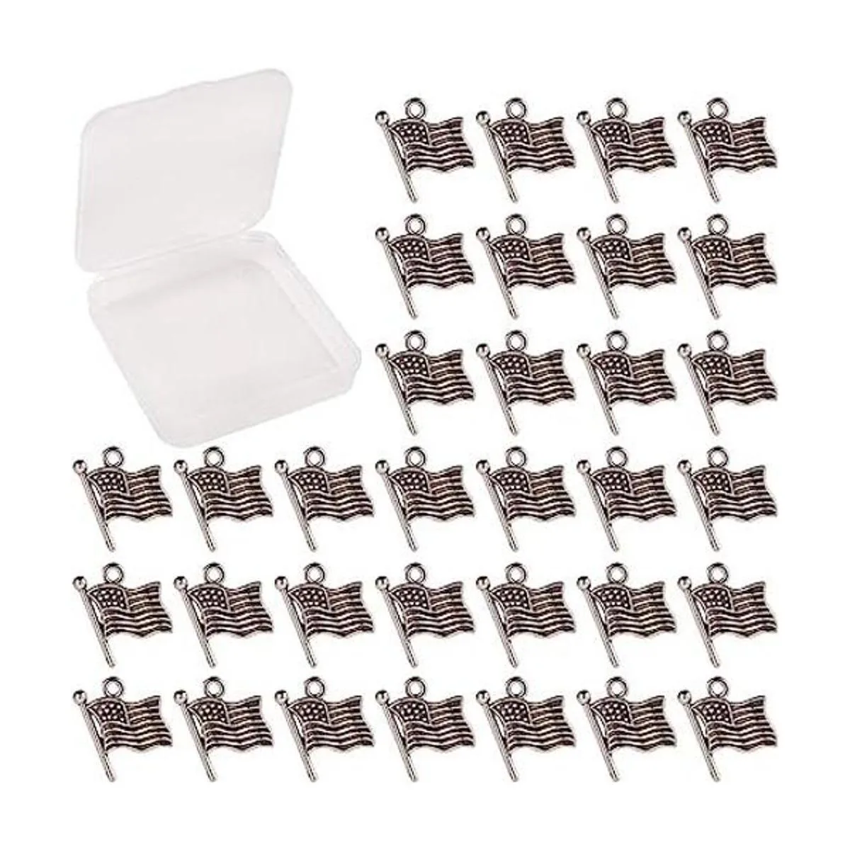 1 caja de 100 abalorios: viene con 100 dijes de bandera estadounidense. Se incluye una caja de plástico para ayudarte a almacenar y proteger fácilmente los accesorios de joyería.