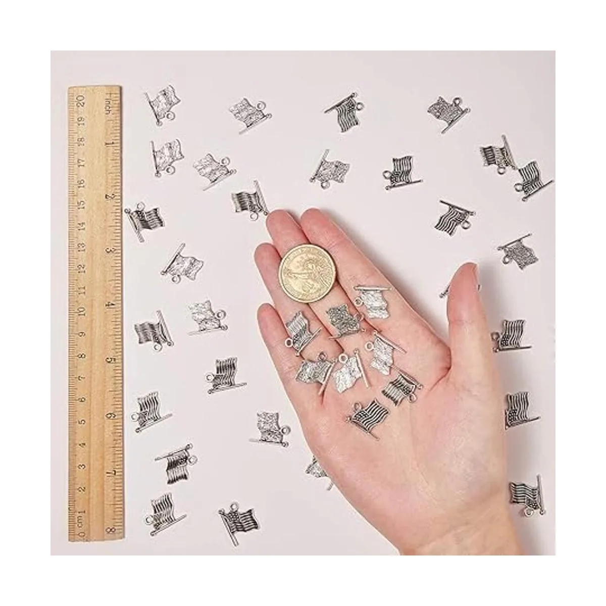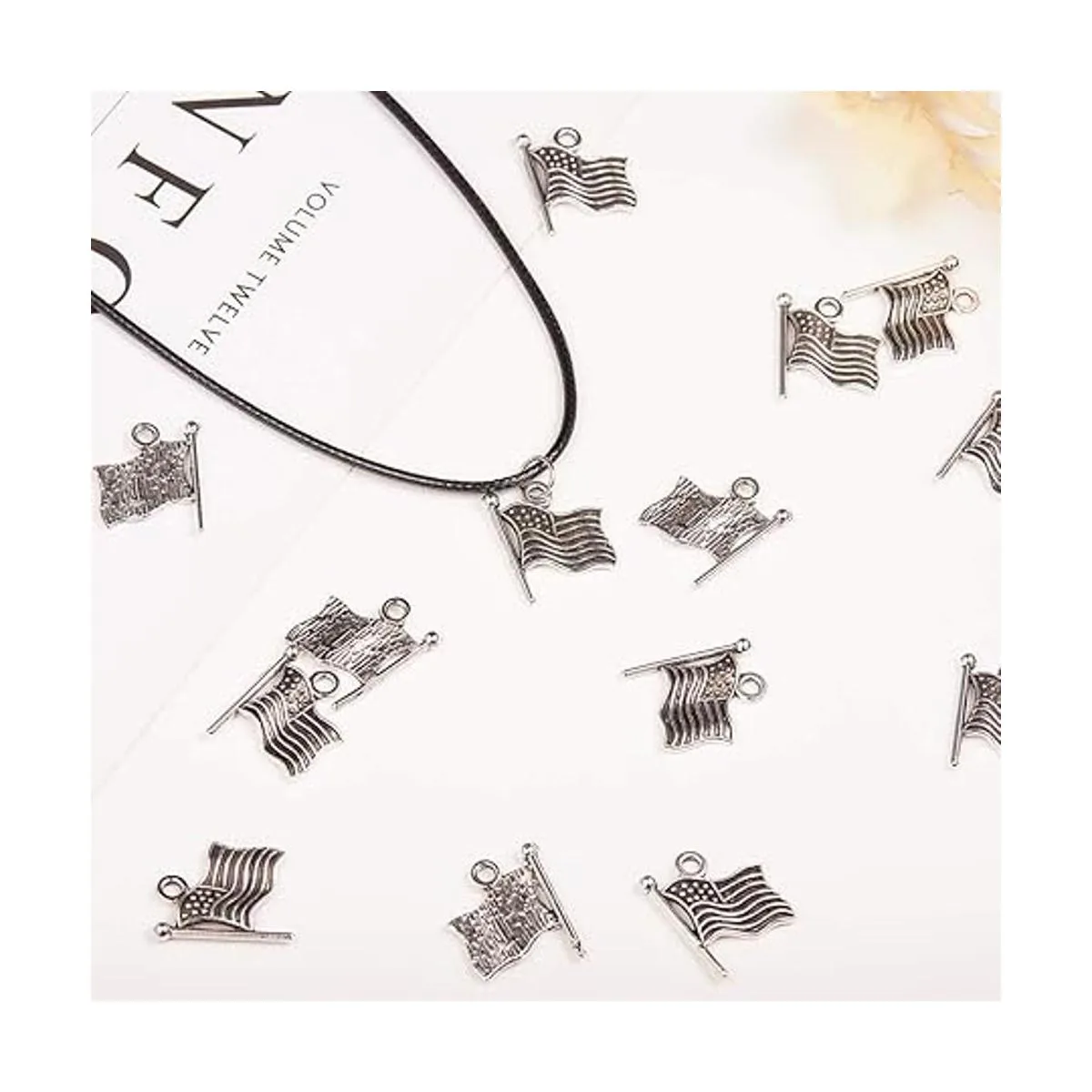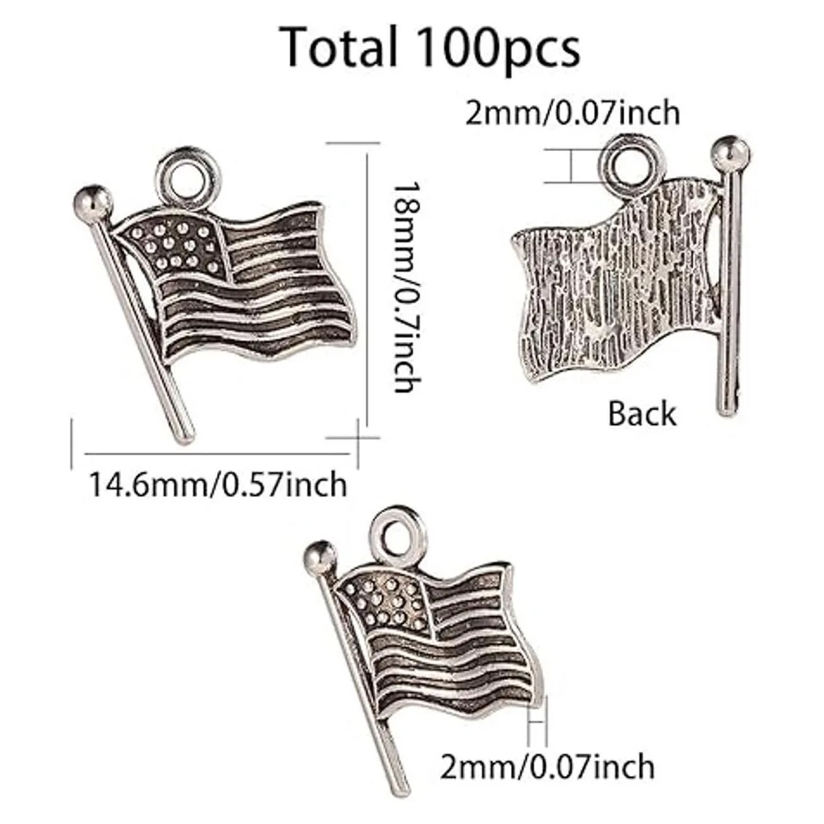 SUNNYCLUE 1 caja, 100 dijes de bandera estadounidense, decoración del árbol de Navidad, dijes de aleación de plata antigua, colgantes, accesorios para hacer joyas para bricolaje, día de la independencia, collares, pulseras, aretes, hallazgos
