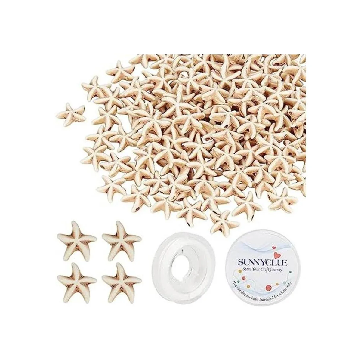 SUNNYCLUE 1 caja de 144 160 cuentas de estrella de mar turquesa, cuentas espaciadoras talladas con hilo elástico de 11 yardas para hacer joyas, collares, pulseras, pendientes, color blanco antiguo