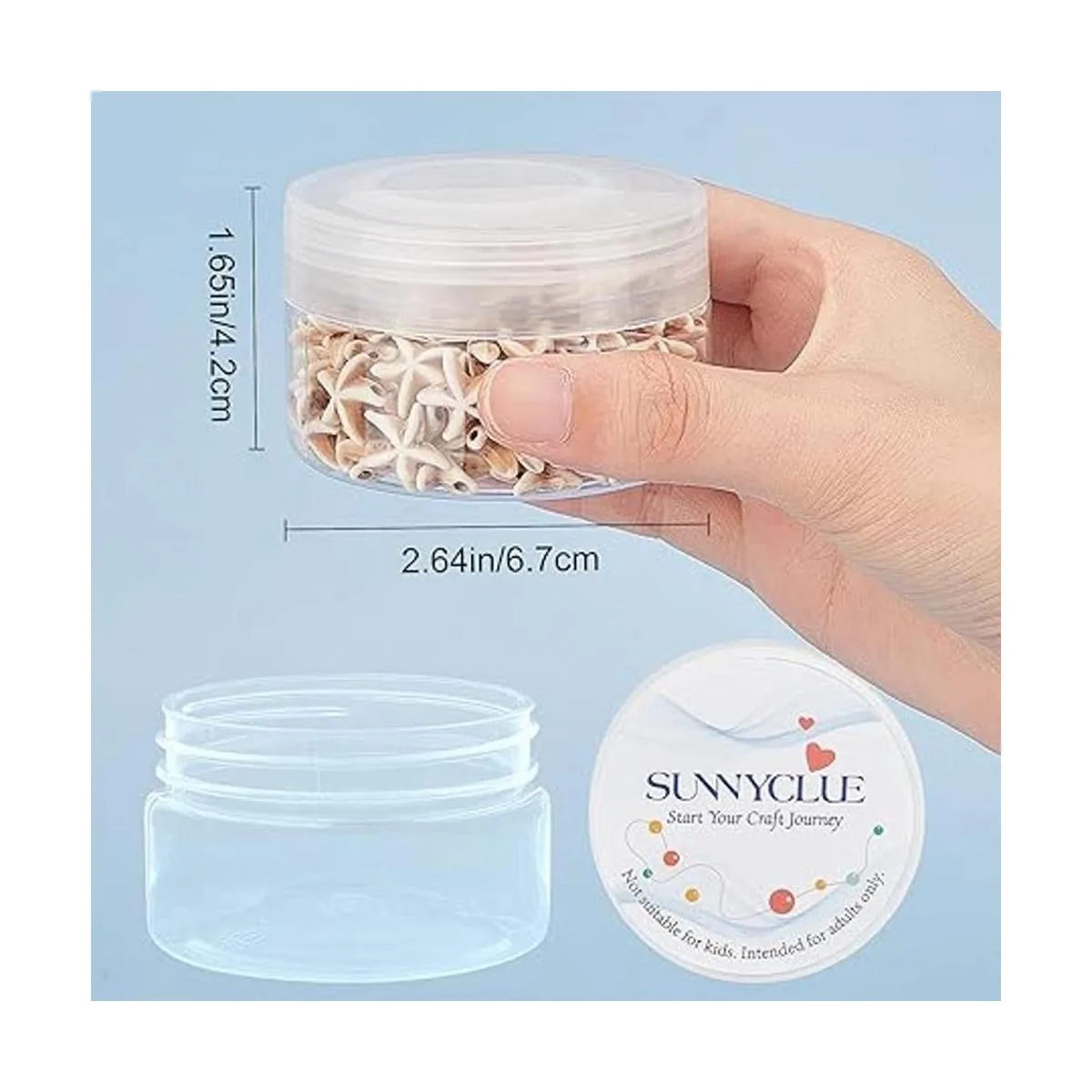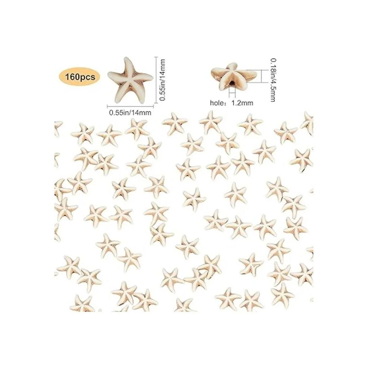 Tamaño: cada cuenta espaciadora de estrellas de mar de aproximadamente 13,5 a 14 x 13,5 a 0.551 x 0.177 in, agujero: 0.047 in. Hilo elástico de aproximadamente 0.031 in. Contenedores de cuentas de plástico de aproximadamente 1.7 x 2.6 in. Capacidad: 2.7 fl oz. oz