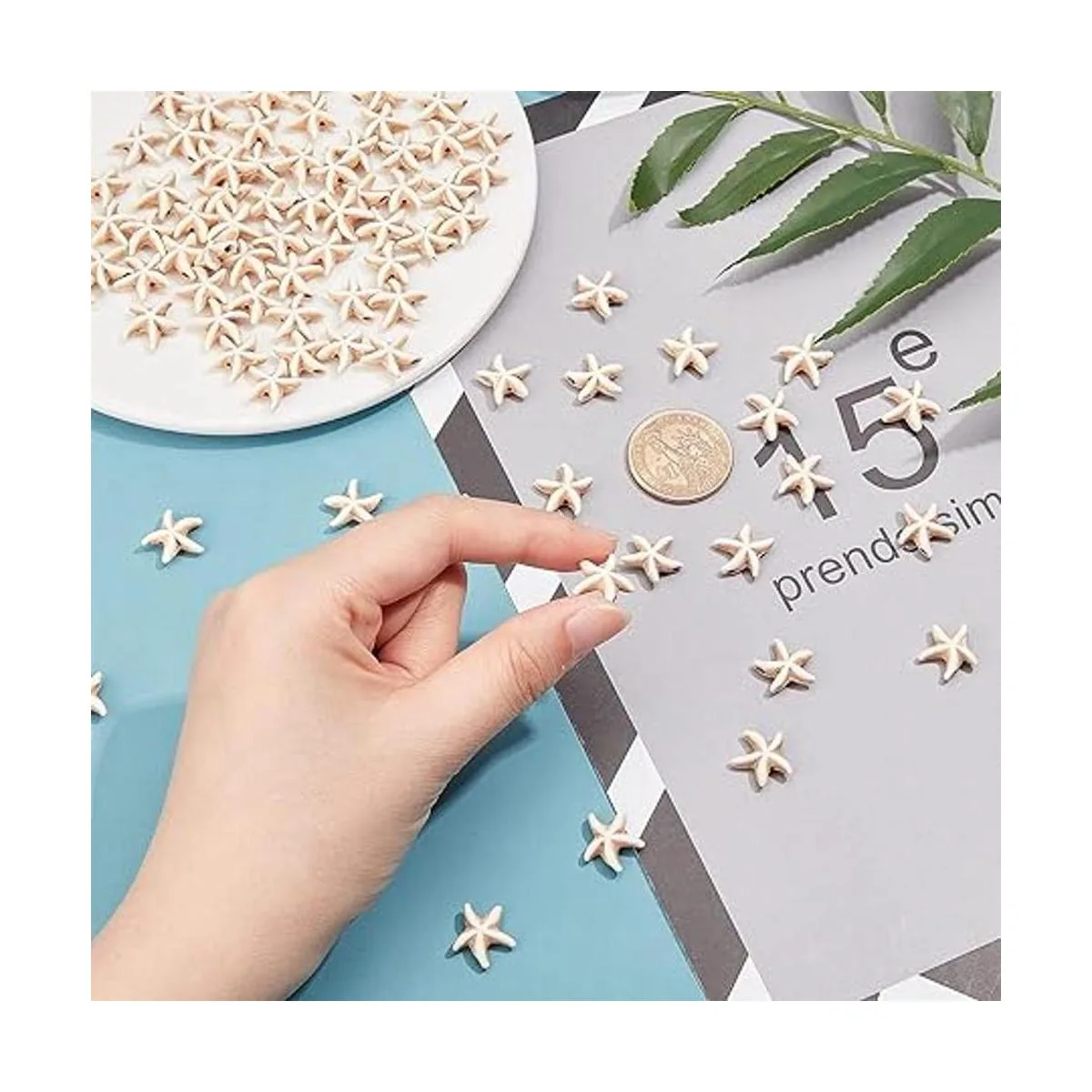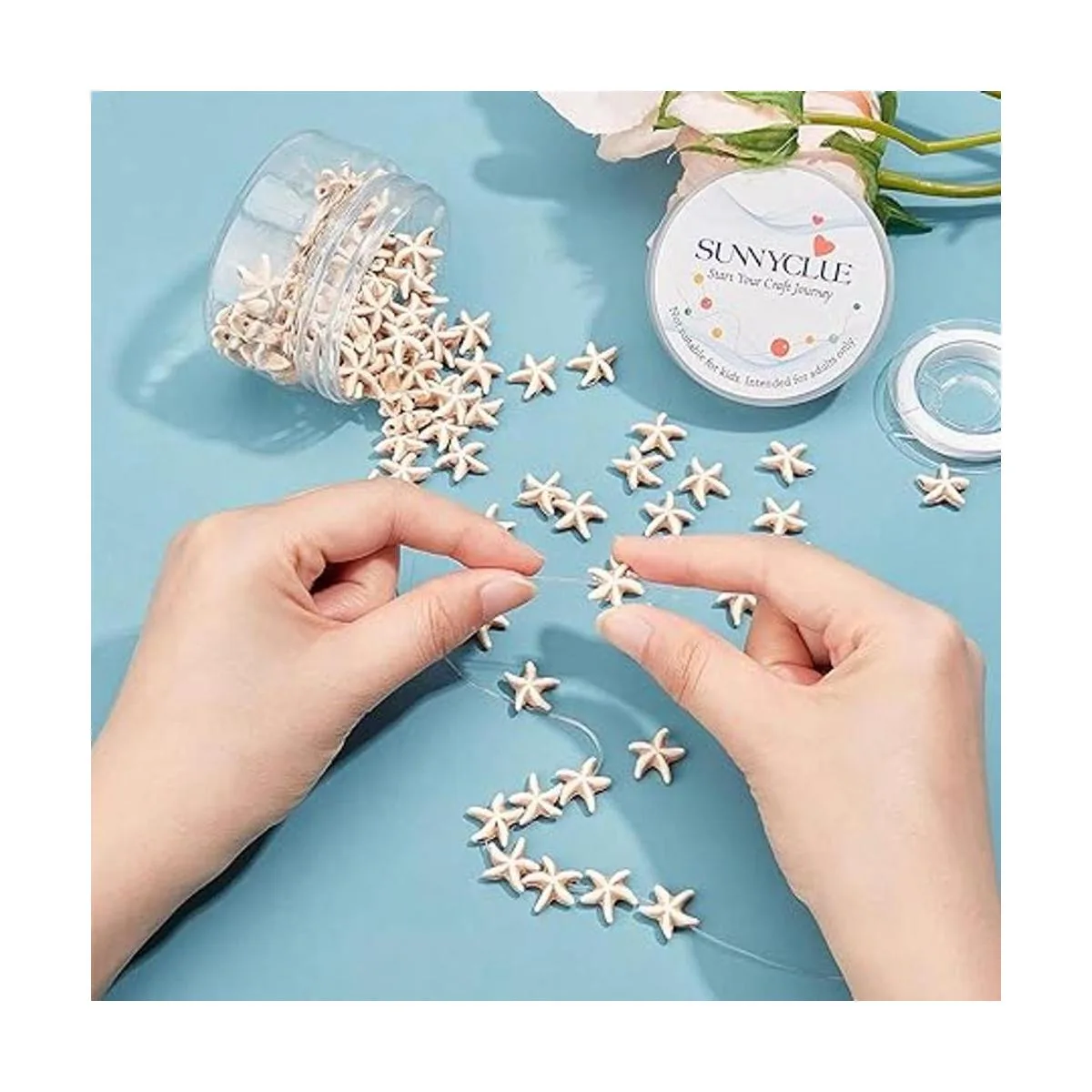 Fácil de usar: simplemente mezcla y combina estas cuentas de estrellas de mar, que pueden añadir un toque de glamour a diferentes proyectos de fabricación de joyas, el hilo elástico puede conectar las cuentas, para que las cuentas se puedan convertir en pulseras y collares. Es conveniente para tu uso como manualidades y hacer pendientes, pulseras, collares, colgantes, tobilleras, cadena de suéter y mucho más.