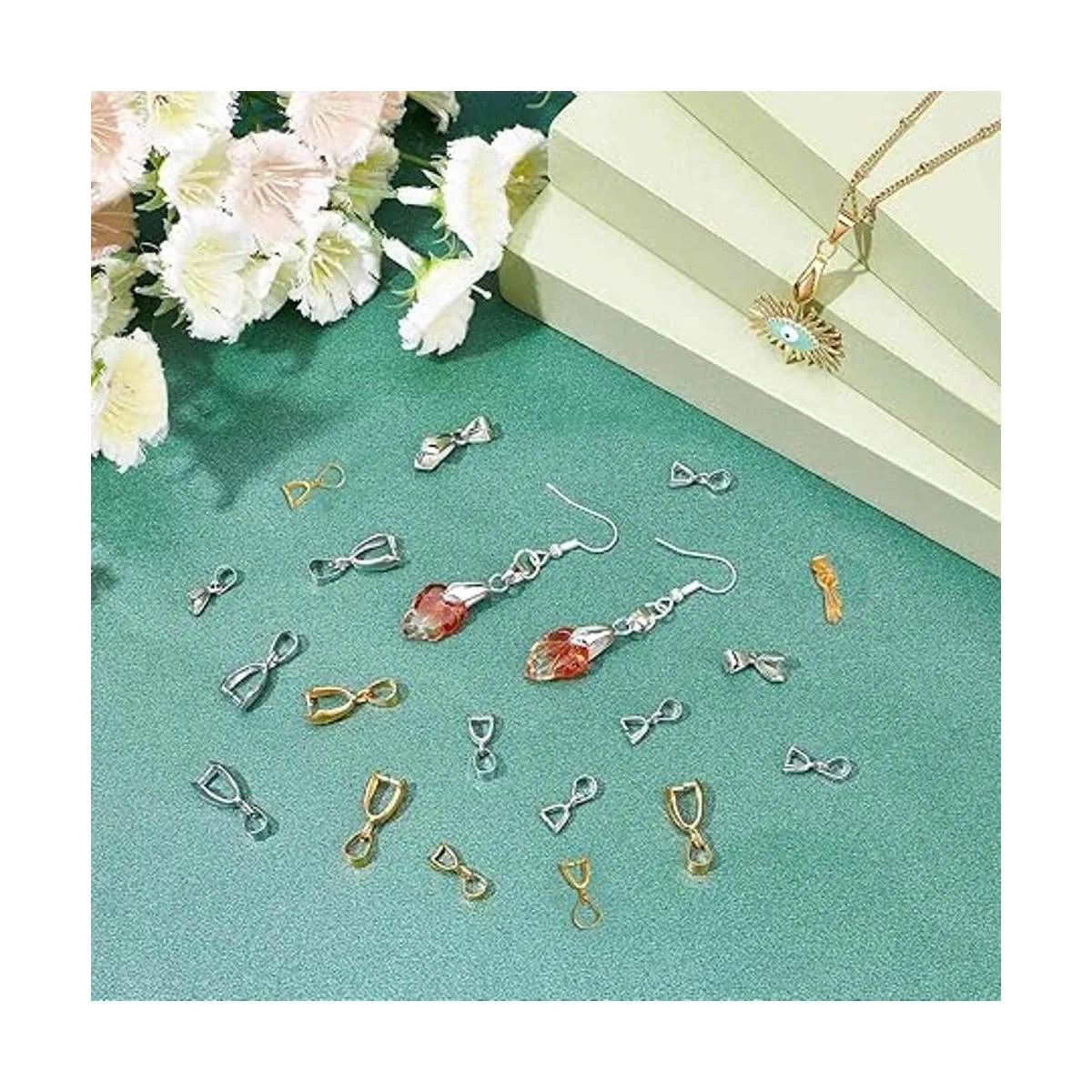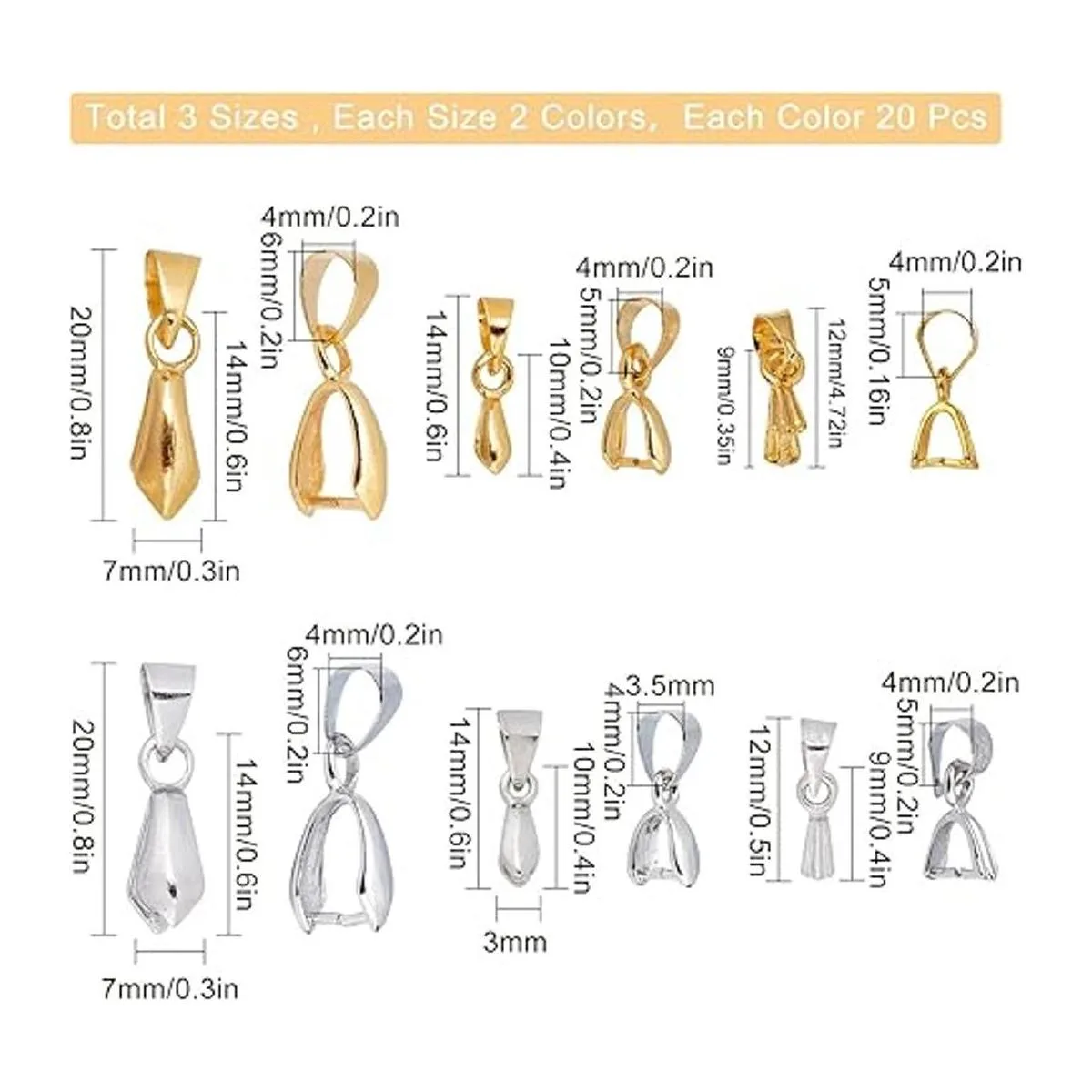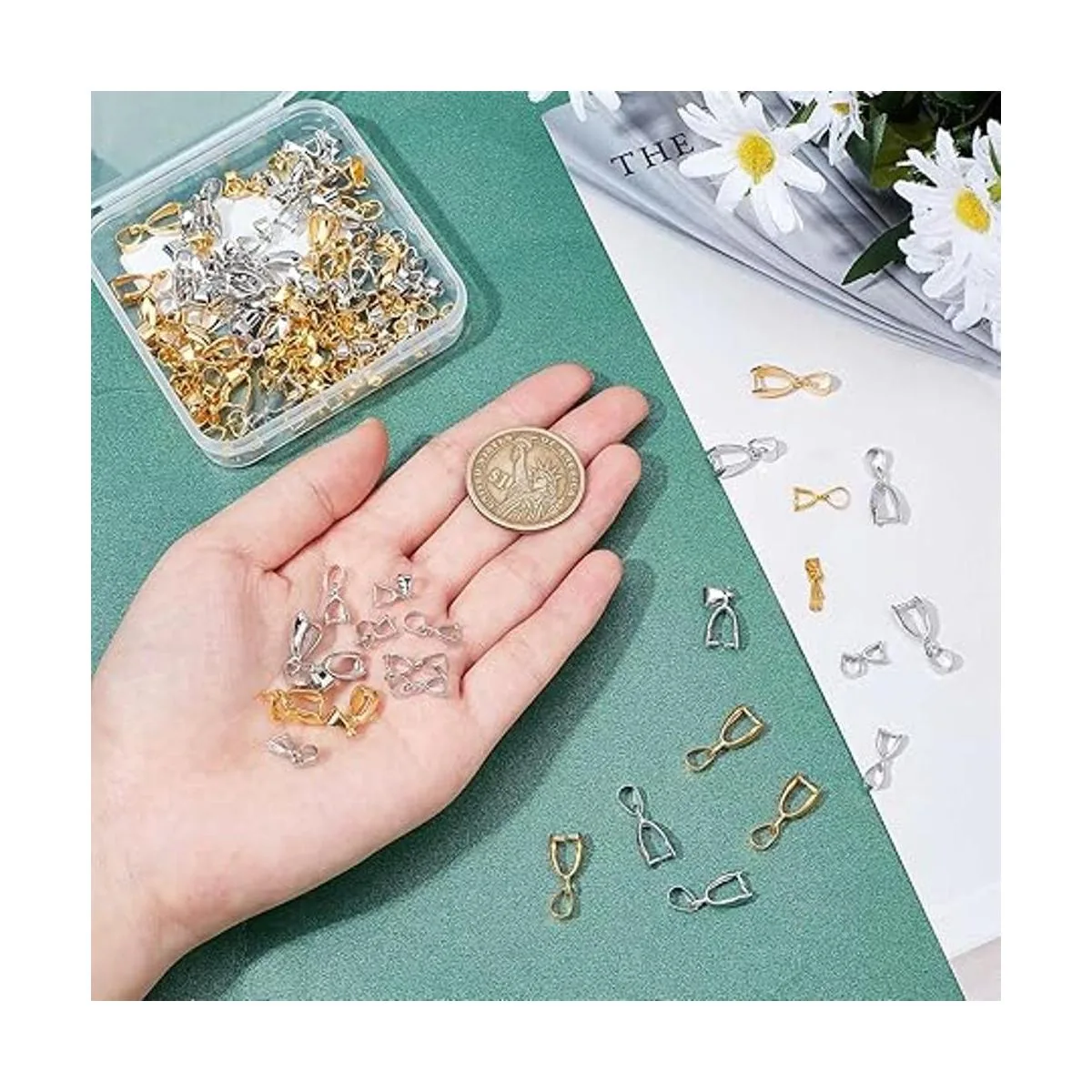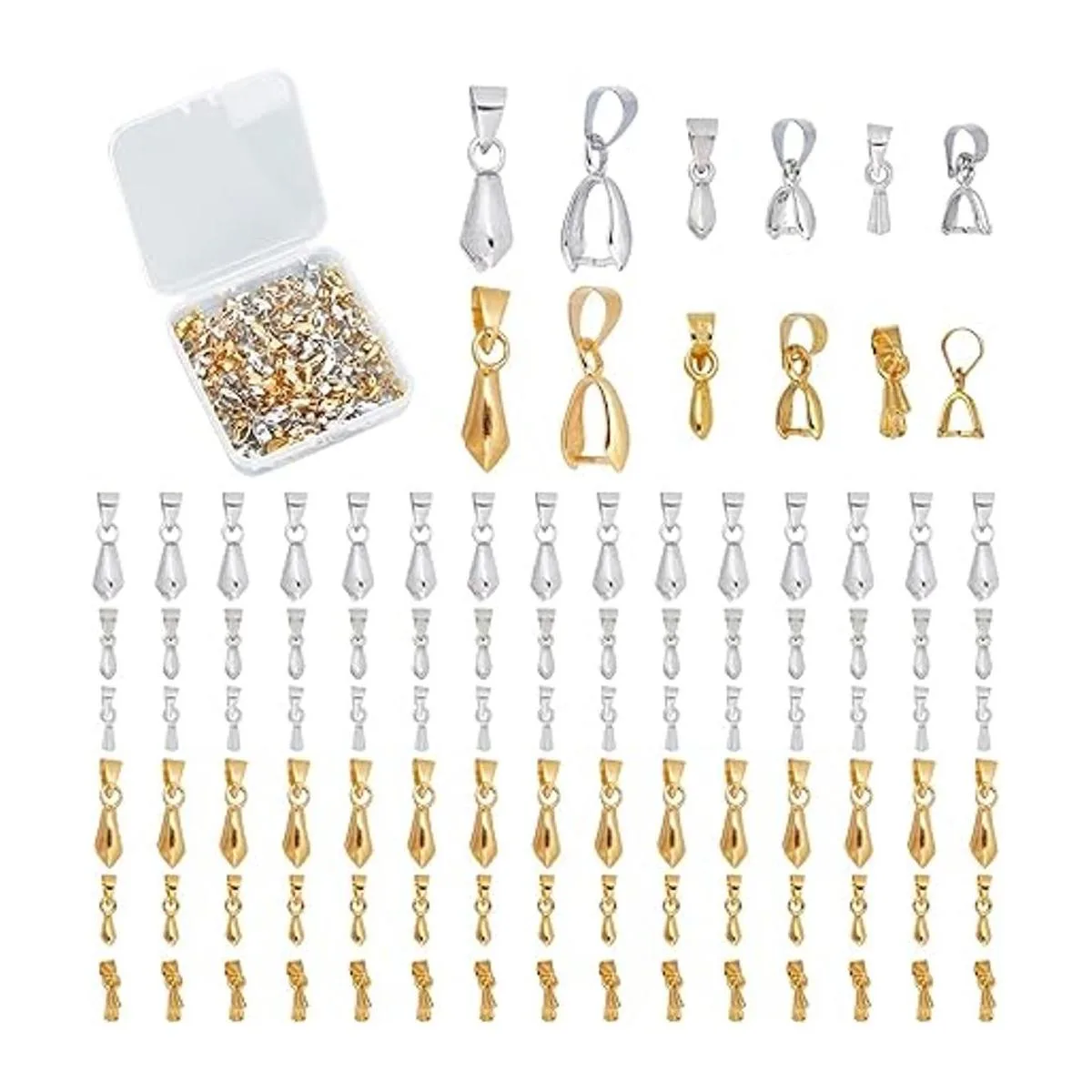 SUNNYCLUE 1 caja de 5 tamaños de latón para colgar en la fianza, con 5 tamaños, con clip de pellizco, cierre de fianza, colgante de abalorios, para hacer joyas, conectores, fianzas para collares, dijes colgantes, manualidades, colores mixtos