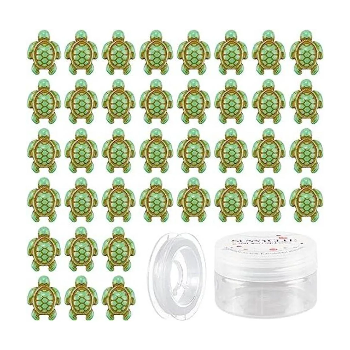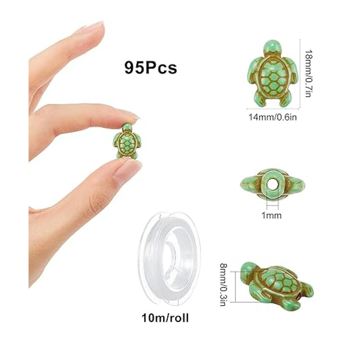 SUNNYCLUE 1 caja de 95 cuentas de tortuga turquesa verde lima, dijes de cuentas espaciadoras sueltas, kits de fabricación de pulseras elásticas con cuentas de 32.8 ft de hilo elástico para collares, pulseras, aretes, bricolaje