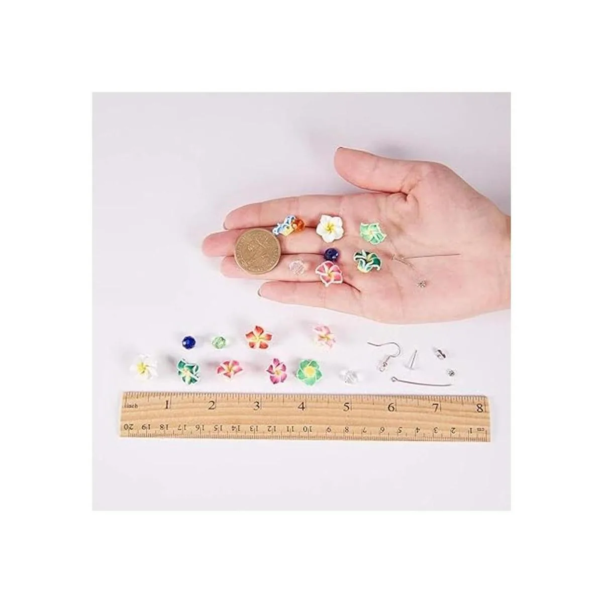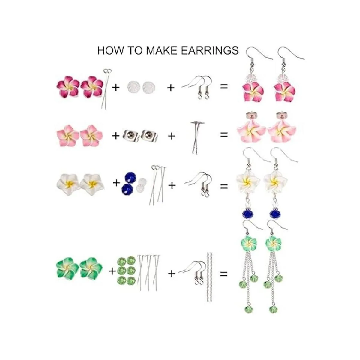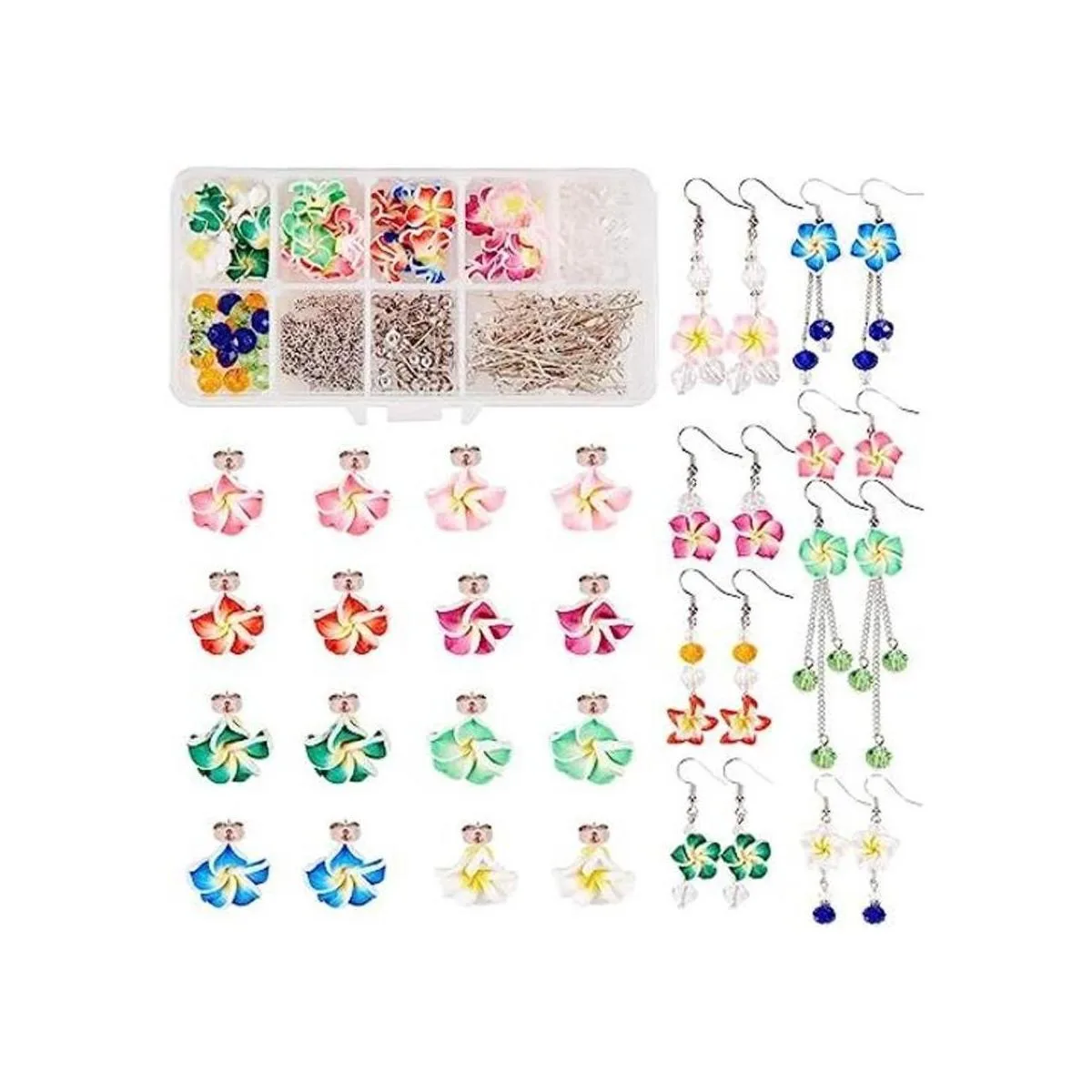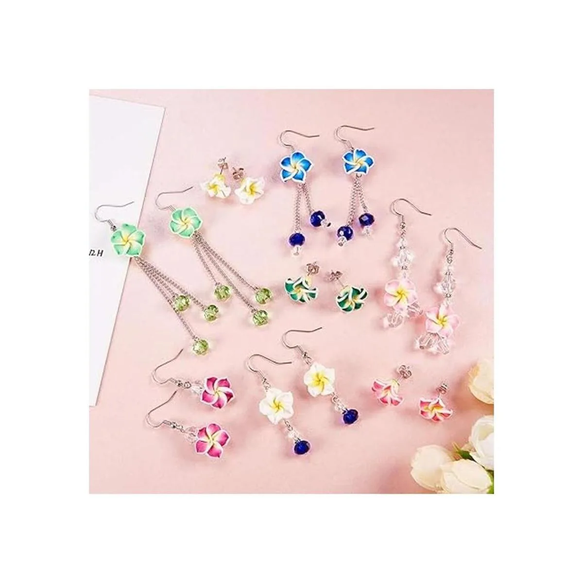 SUNNYCLUE 1 caja DIY hacer 16 pares de arcilla de polímero 3d flor Stud colgante pendientes Kit de hacer Hawaiian Plumeria Floral cuentas con pendientes ganchos y en blanco Peg Ear Stud
