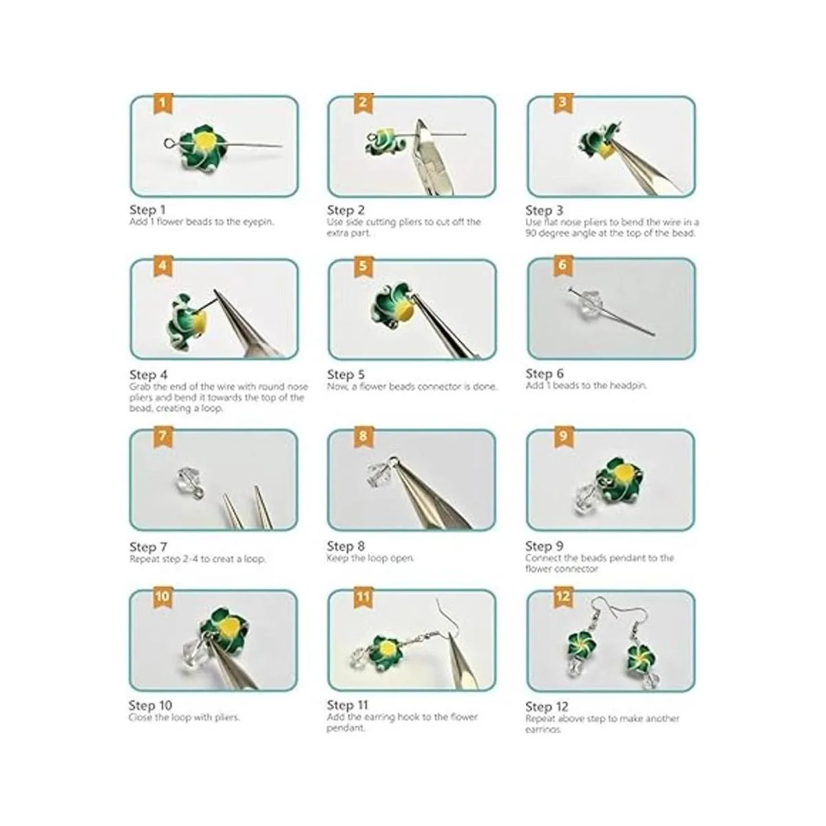 Incluye: 32 cuentas de plumeria de flores 3D; 16 ganchos para pendientes; 16 componentes para tuerca; 16 soportes para pendientes; 30 abacus bicónicos; 1 cadena de 3.3 ft x rizo; 40 cabezales; 40 ojales; 1 caja de plástico.