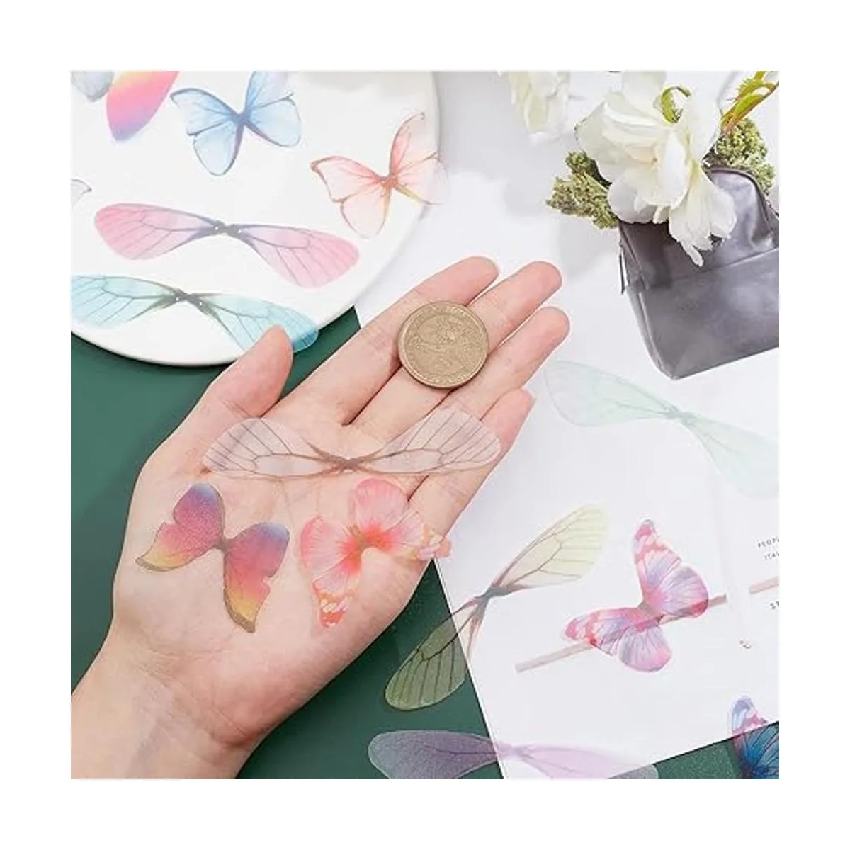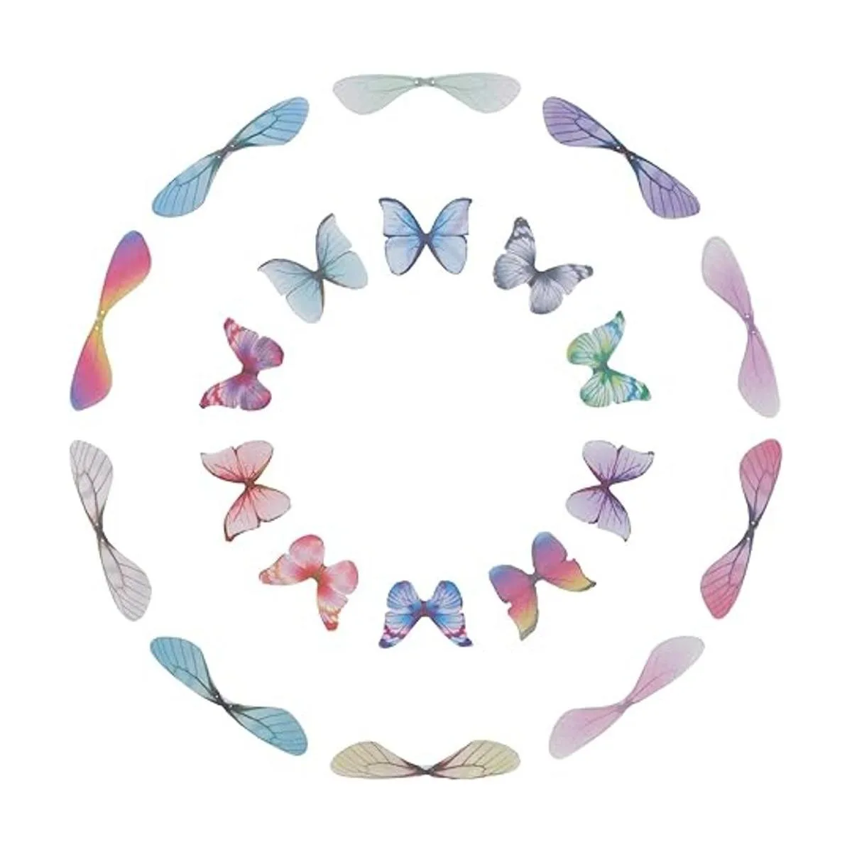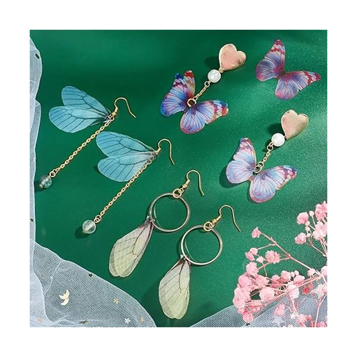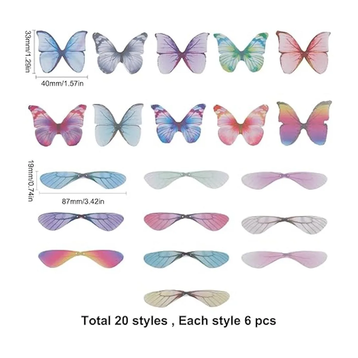 SUNNYCLUE 120 colgantes de alas de libélula de 20 estilos con alas de mariposa voladoras, de tela de poliéster, accesorios para manualidades, aretes, collares, clips para el pelo, decoración