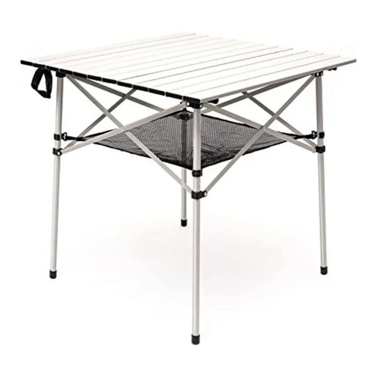 Extremadamente ligera y práctica: el tamaño de la mesa de camping plegable de aluminio ligera y resistente es de 27.5 x 27.5 x 27 pulgadas y pesa solo 6.8 libras, proporcionando la gran comodidad para que viajes. La red de malla adjunta ofrece un almacenamiento espacioso adicional para que puedas almacenar tus bebidas, alimentos y otras cosas.