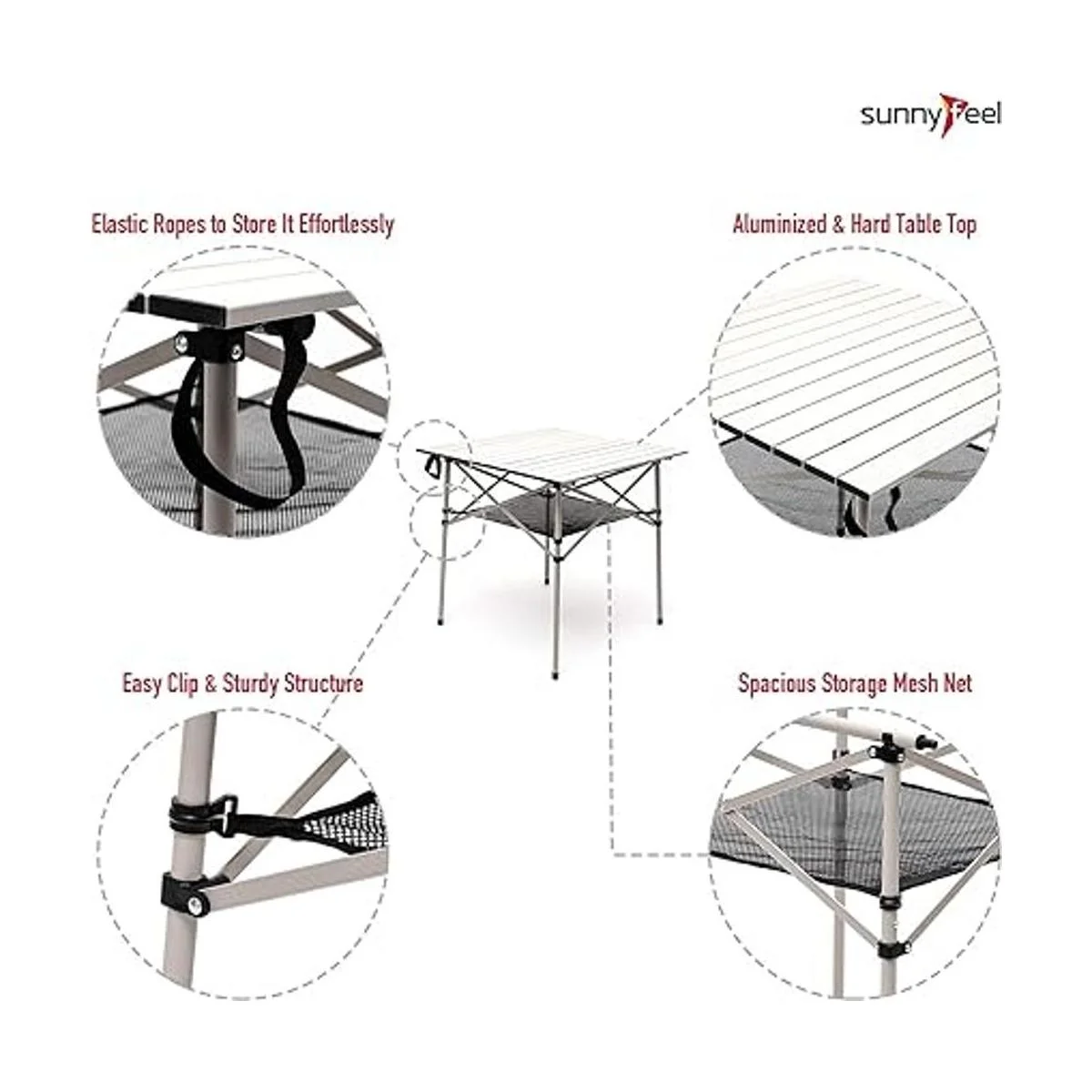 SunnyFeel Mesa plegable para exteriores Mesa de camping de aluminio ligera y compacta, mesa cuadrada de campamento portátil para 4 personas con bolsa de transporte para picnic, cocina, playa, viajes, barbacoa