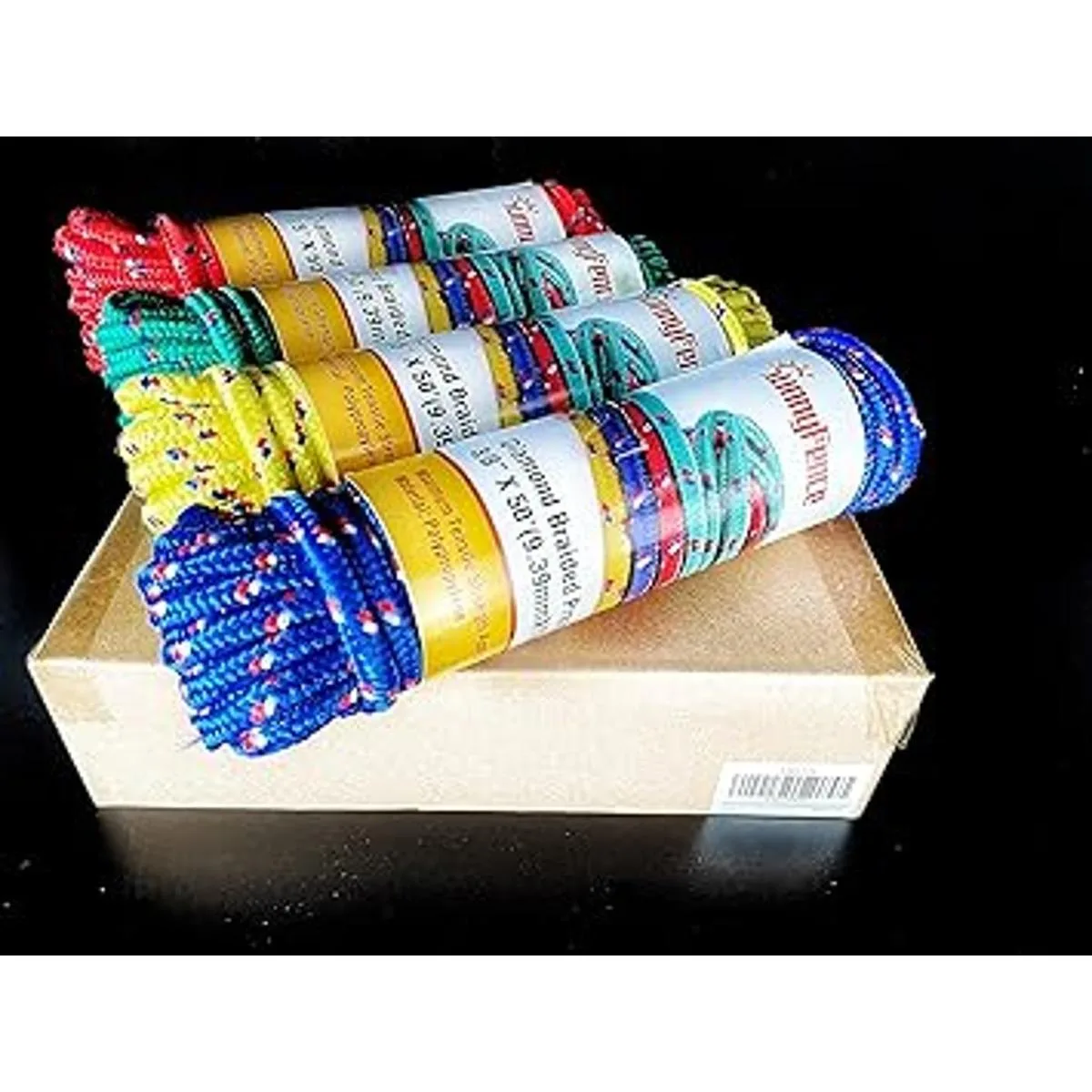 SunnyFence Cuerda de polipropileno trenzado de diamante, de 38 pulgadas, 200.1 ft, 4 paquetes de 38 pulgadas x 50 pies, cuerda resistente con rojoamarilloazulverde