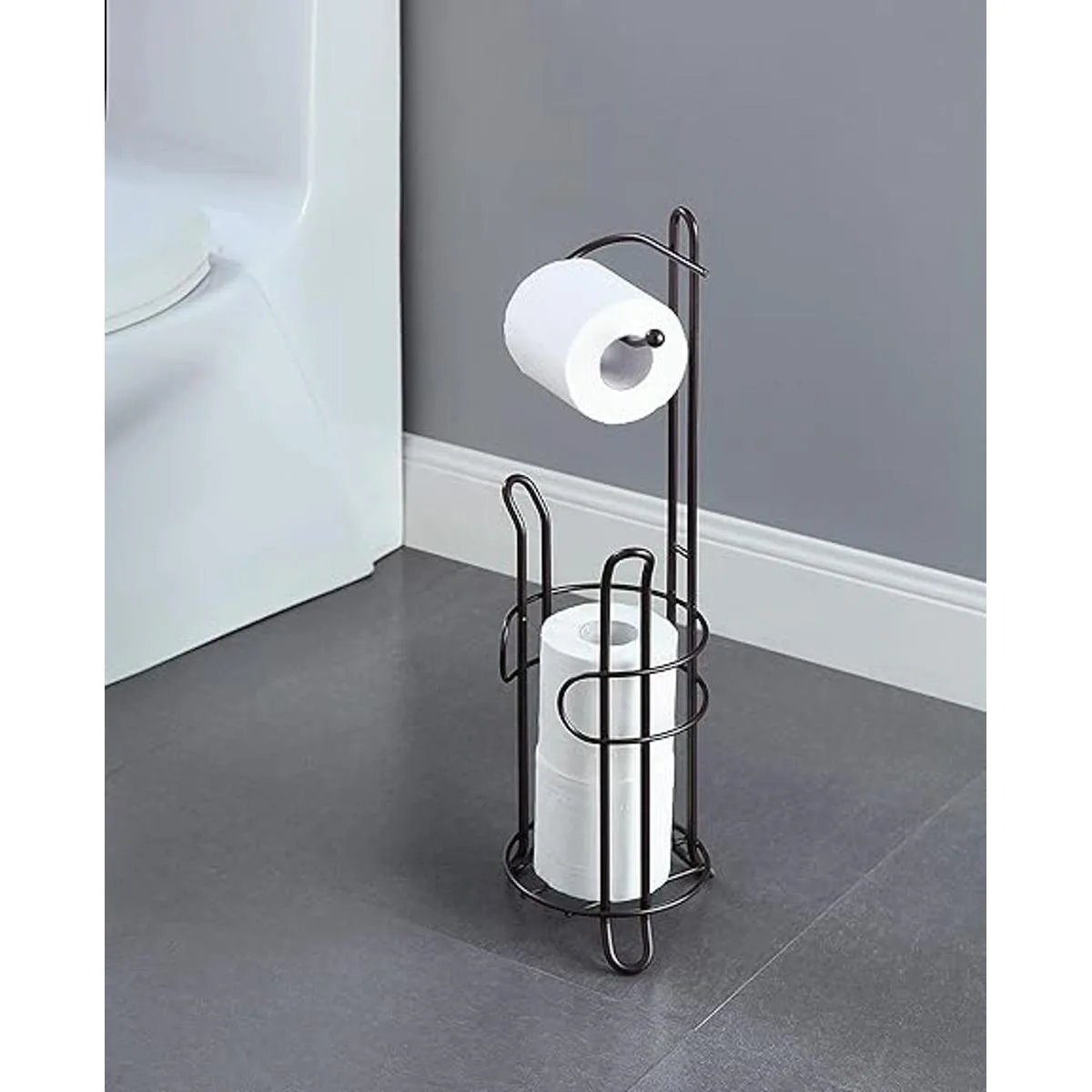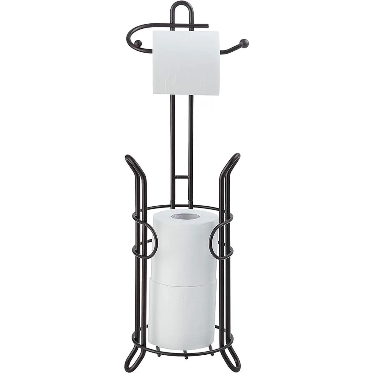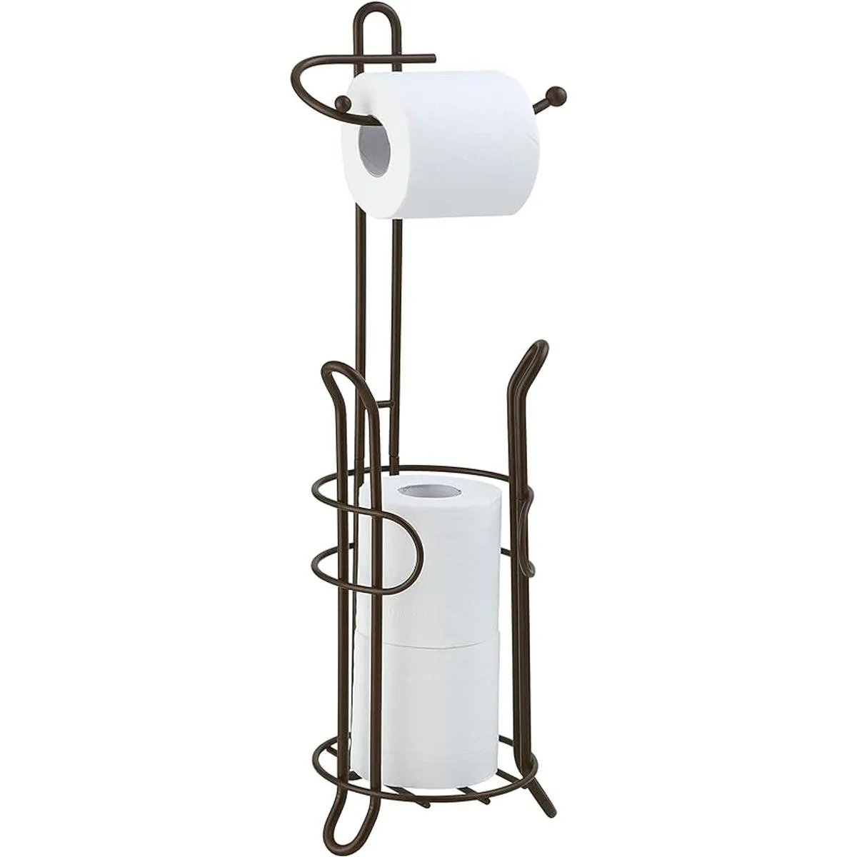 SunnyPoint Soporte de almacenamiento de rollo de papel higiénico para baño con reserva, el área de reserva tiene suficiente espacio para almacenar megavollos; revestimiento de bronce