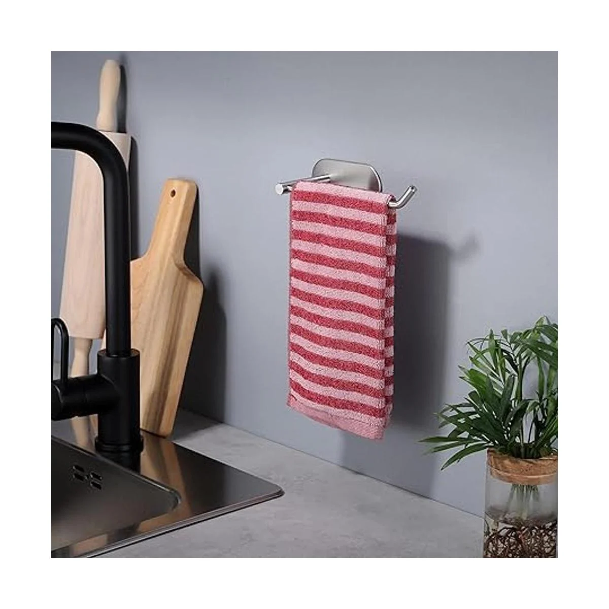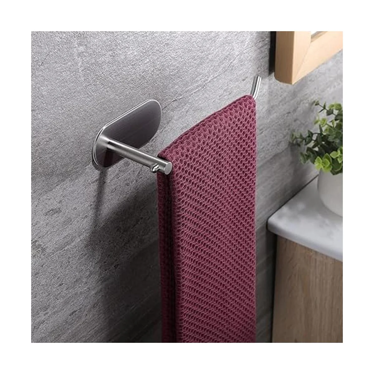 Se pega fácilmente en la pared: no tarda más de 30 a 60 segundos en pegarse a la pared, con un tiempo de espera para que el adhesivo se coloque o se seque, luego úsalos para colgar un paño de cocina y una toalla de mano. Ten en cuenta que el producto es más firme cuando se pega en una superficie lisa y limpia. Nota: no pegues el toallero en la pared pintada.