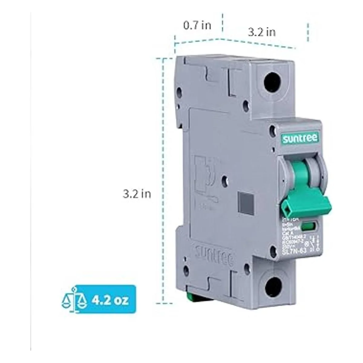 Suntree Disyuntor de CC de un solo polo de 32 amperios para sistema solar fuera de la red, caja combinadora fotovoltaica, caja de interruptores