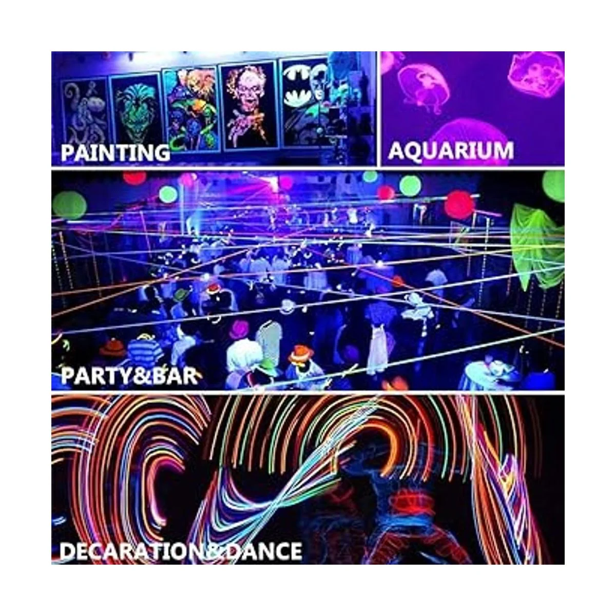 WIDELY APPLICATION Perfect for stage lights, gallery, special effects, photography, birthday, wedding neon glow party and celebration. Used for currency, DL, ID card, passport verification; Aquarium, party, gym, laser tag , petroleum jelly glass, uranium glass lighting.