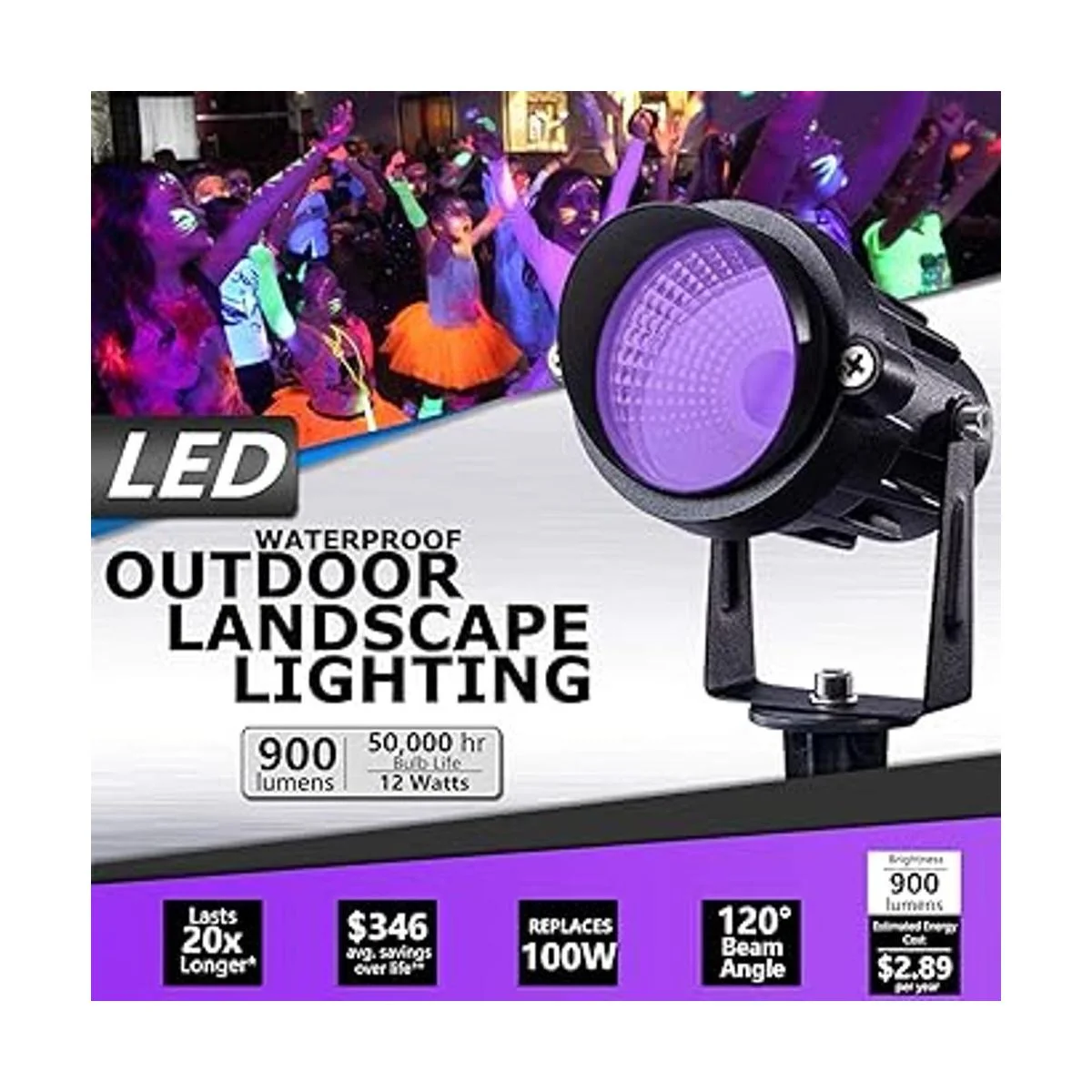 SUNVIE 12W LED Black Lights Blacklight Landscape Lighting Outdoor Spotlights with US Plug IP66 for Dance Party Glow in The Dark Stage Lighting Aquarium Body Paint Fluorescent Poster Neon Glow 2 Pack