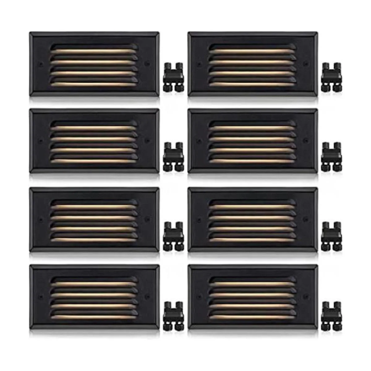 SUNVIE Luces de escalón de 5 W de bajo voltaje, luces de escalera para exteriores, 3000 K, luces LED de bajo voltaje con rejilla horizontal, luces de escalón para exteriores, escaleras, cierre rápido, 2 conectores incluidos, paquete de 8