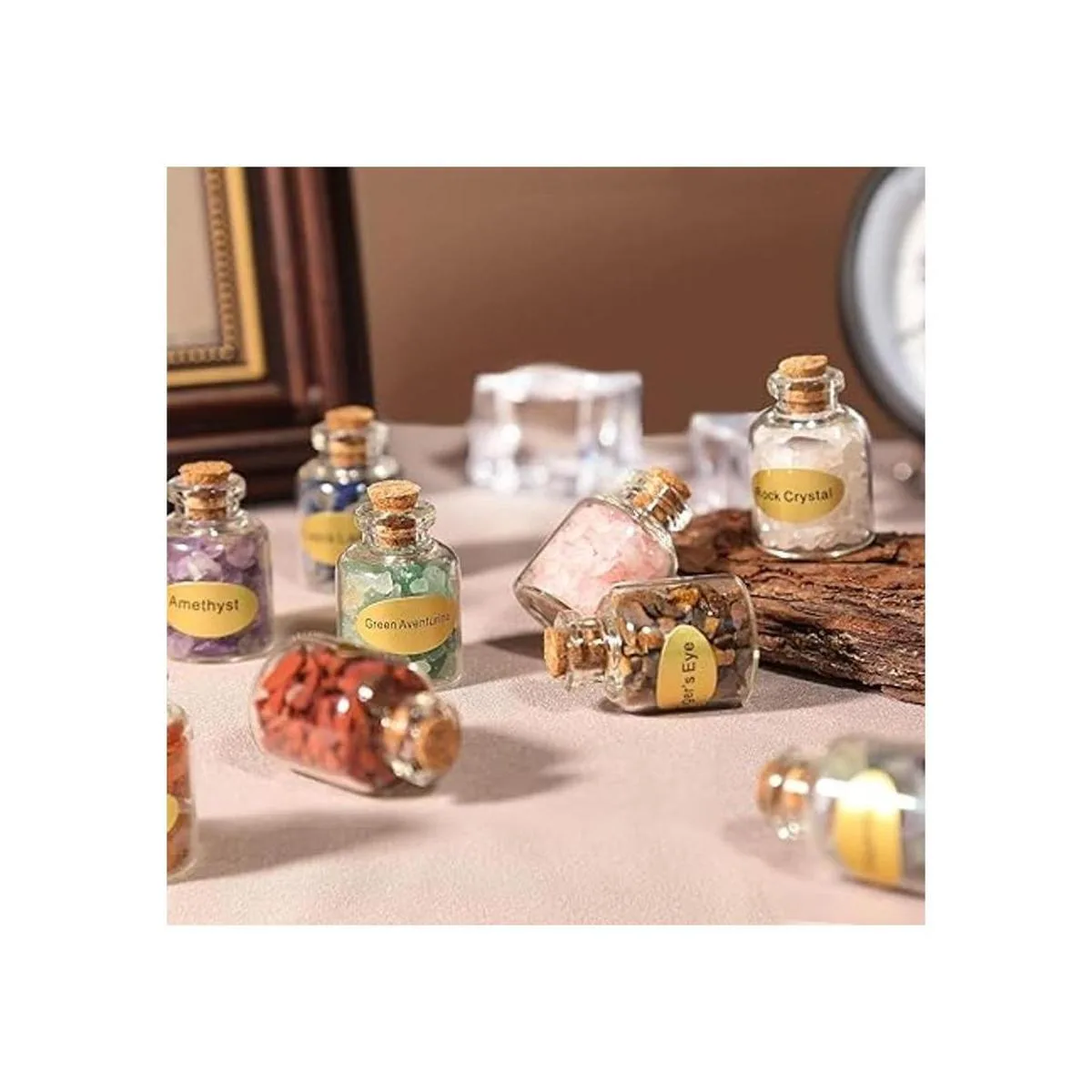 Sunyik 9 Juego de minibotellas con gemas, para curación con cristal, piedras para wiccareiki