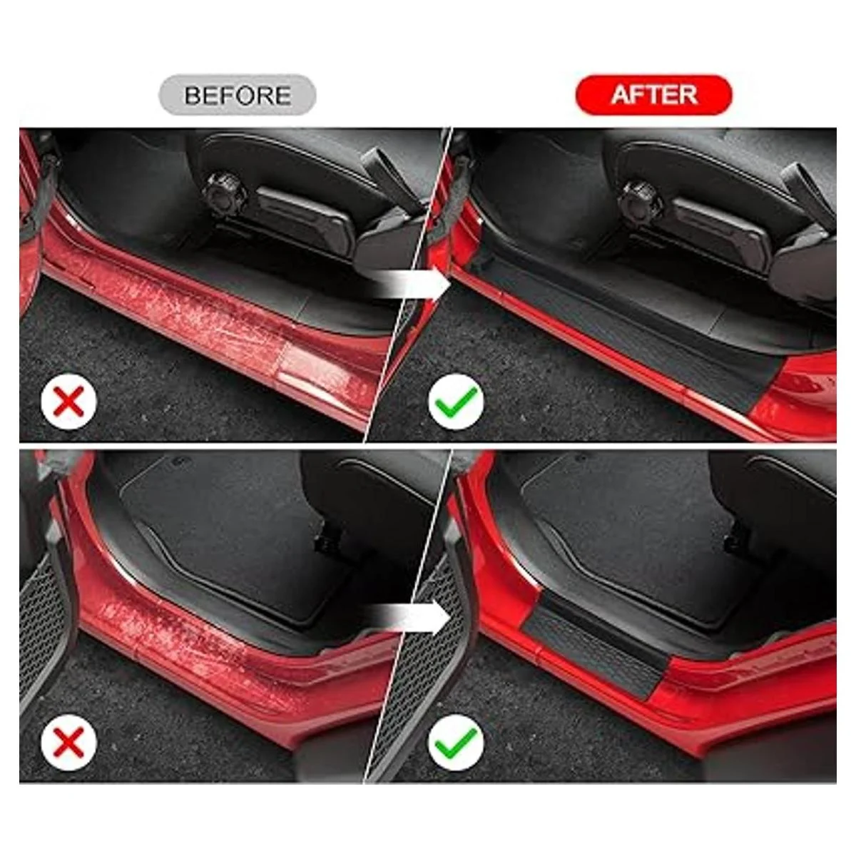 El paquete incluye: 2 protectores de umbral de puerta delantera y 2 protectores de umbral de puerta trasera. Completa 100 satisfacción posventa incluida. Si hay algún problema, simplemente ponte en contacto con nosotros. Obtén uno libre de riesgos. Servicios posventa 100 de satisfacción.