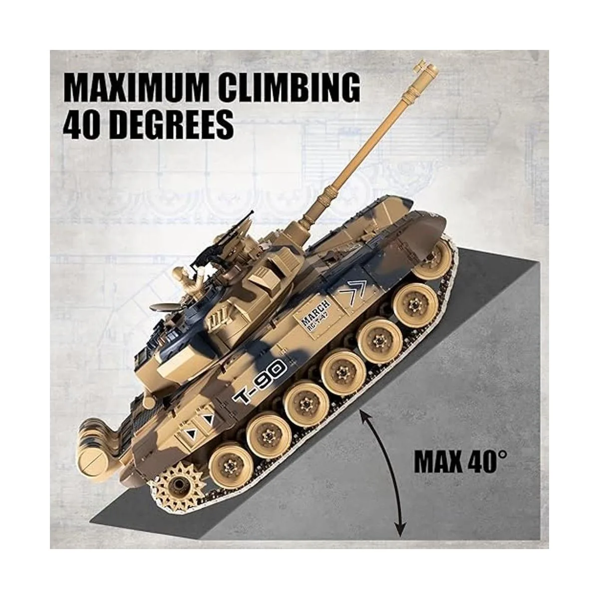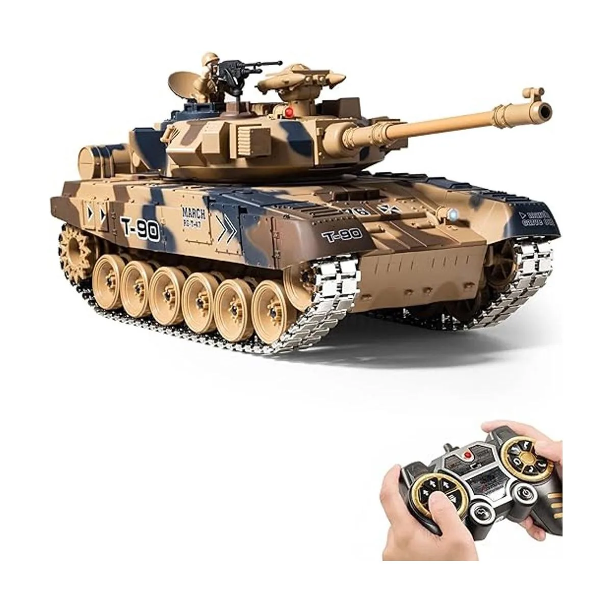 Supdex Tanque de control remoto 118 para adultos y niños, tanque de control remoto con pista de metal 2.4G RUS T90 Camión tanque de batalla militar, fumador, ligero y sonido, vehículos militares, modelo de juguetes que disparan balas BBS Airsoft