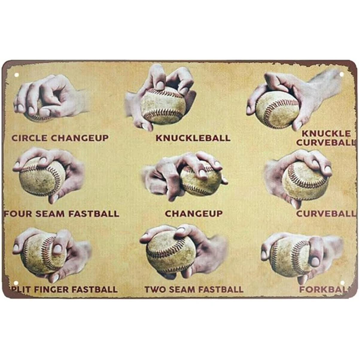 Super durable Letreros de estaño vintage con agarre de lanzamiento y habilidades de béisbol, bar, cafetería, garaje, decoración de pared del hogar, letrero de béisbol de 8 x 12 pulgadas