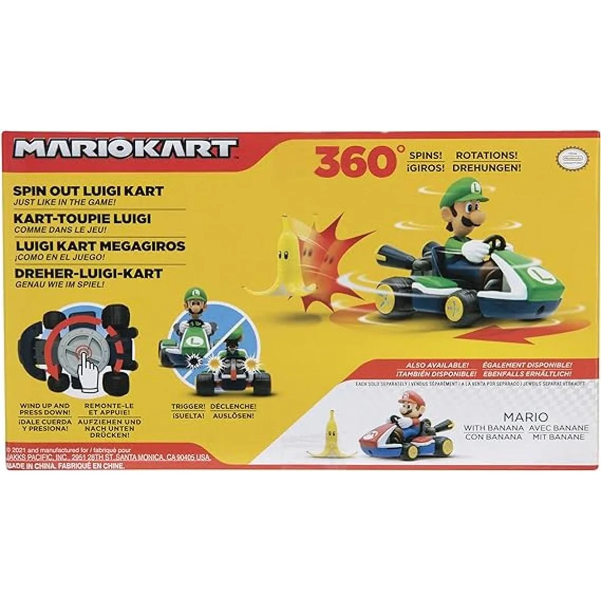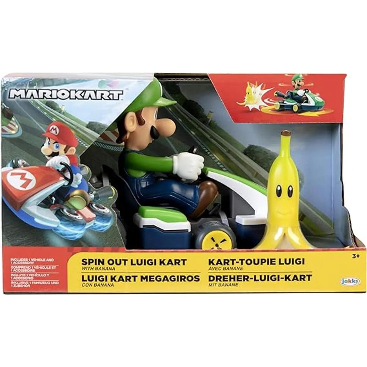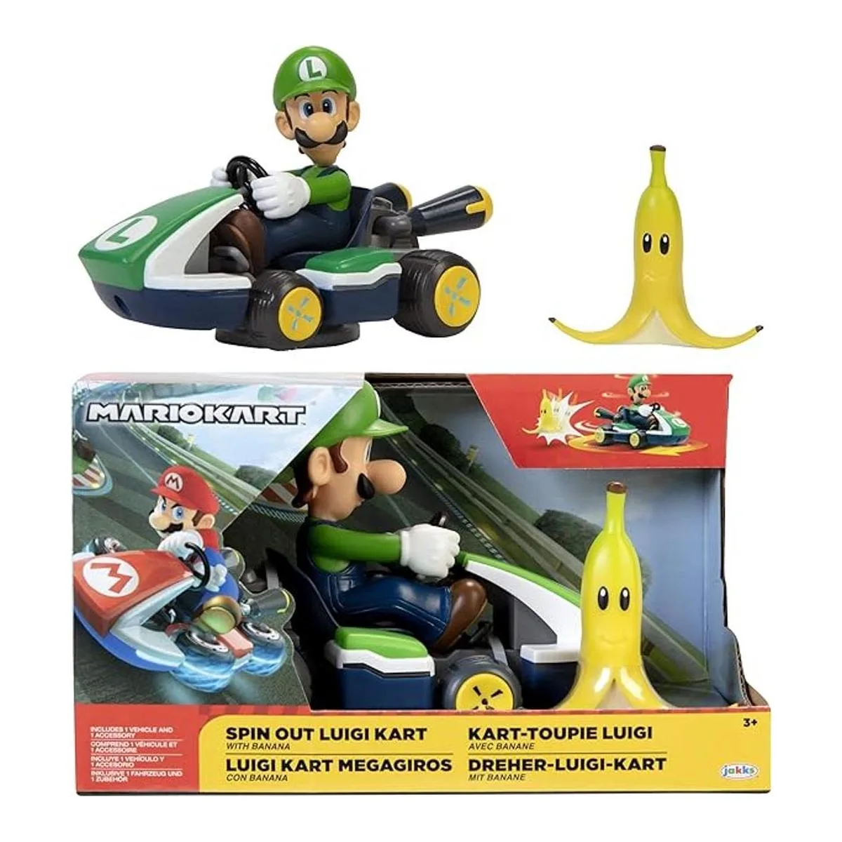 SUPER MARIO Spin Out Mariokart Vehículo Luigi Racer de 2.5 pulgadas