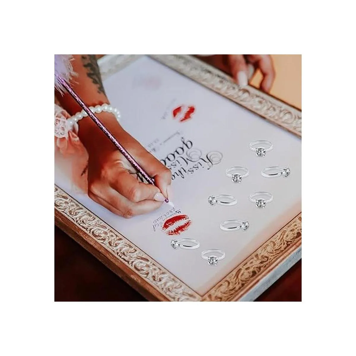 Estos anillos se pueden utilizar como adornos para cupcakes que se pueden apoyar en el centro de magdalenas, galletas, pasteles, pasteles y otros postres. Estos anillos de diamantes falsos también se pueden utilizar como adornos de fiestas. Se puede pegar a la parte superior de cajas de dulces de color blanco o sólido, lazos con cordel o cuerda atada en bolsas de caramelos.
