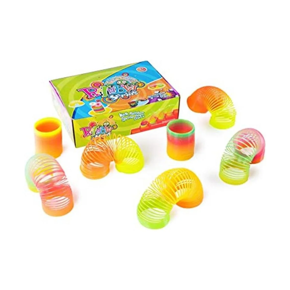 Super Z Outlet Novedad clásica Juguete de primavera de plástico de neón colorido arcoíris para recuerdos de fiesta de cumpleaños, rellenos de bolsas, regalo paquete de 12