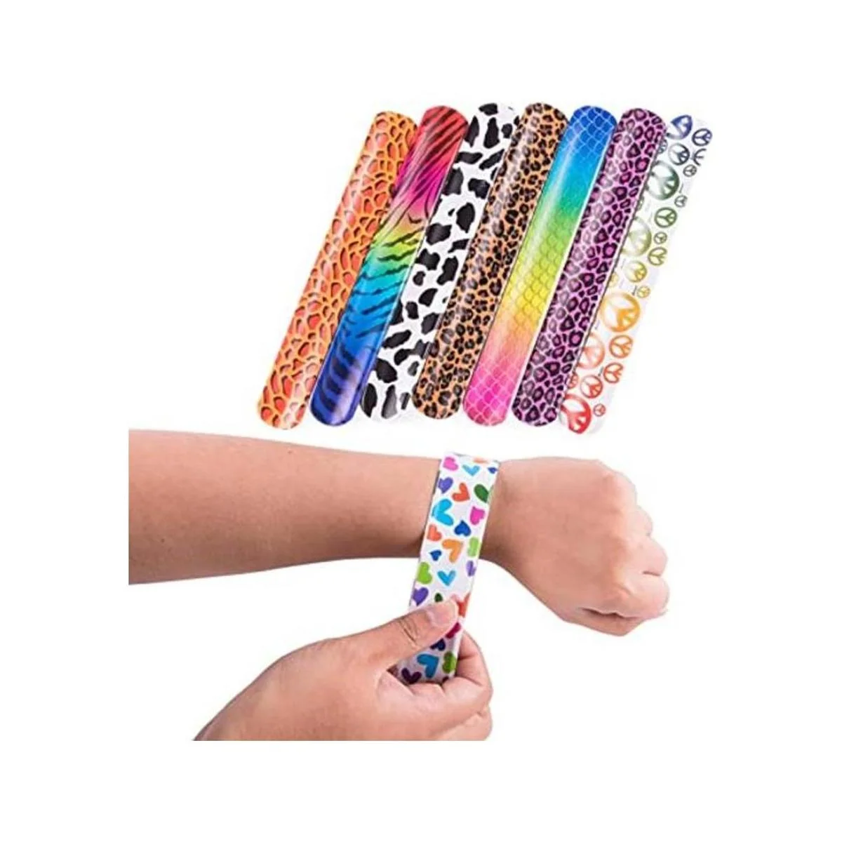 Simplemente coloca la pulsera de plástico de vinilo en tu muñeca y formará un agarre cómodo y ajustado. Hecho de un vinilo suave que cubre una tira interior de plástico. Un juguete clásico que es divertido para cualquier persona. Se mezclan bien como accesorios hawaianos, decoración de circo e incluso una fiesta temática de superhéroes.