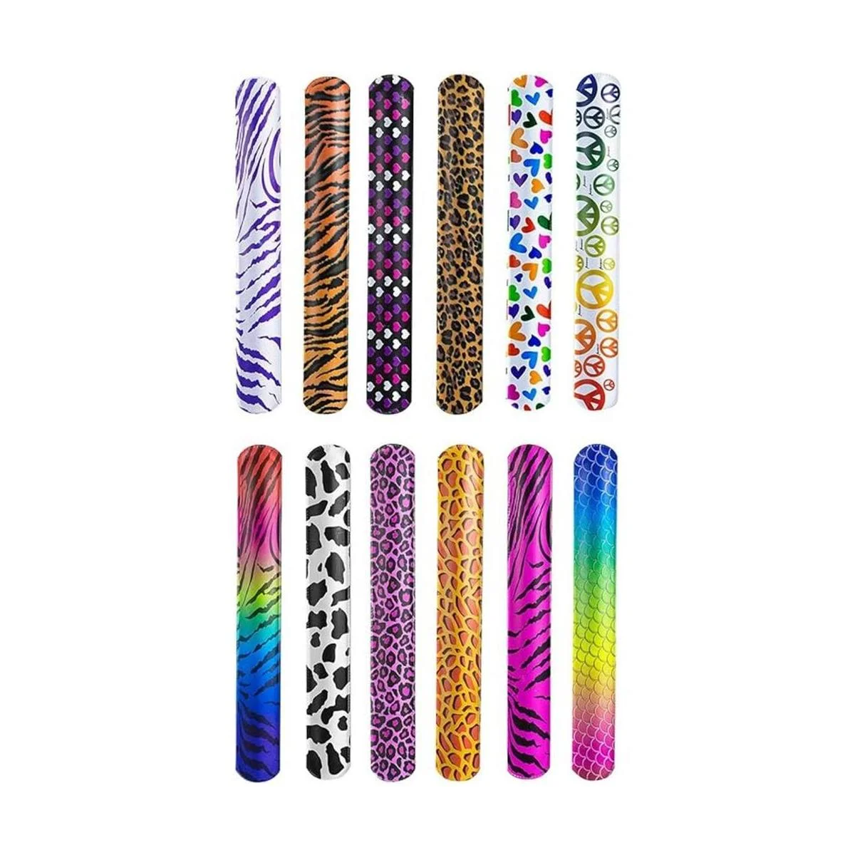 Super Z Outlet Pulseras retro de vinilo de plástico con corazones coloridos y patrones de diseño de estampado animal para niños, recuerdos de fiesta de juguetes paquete de 72
