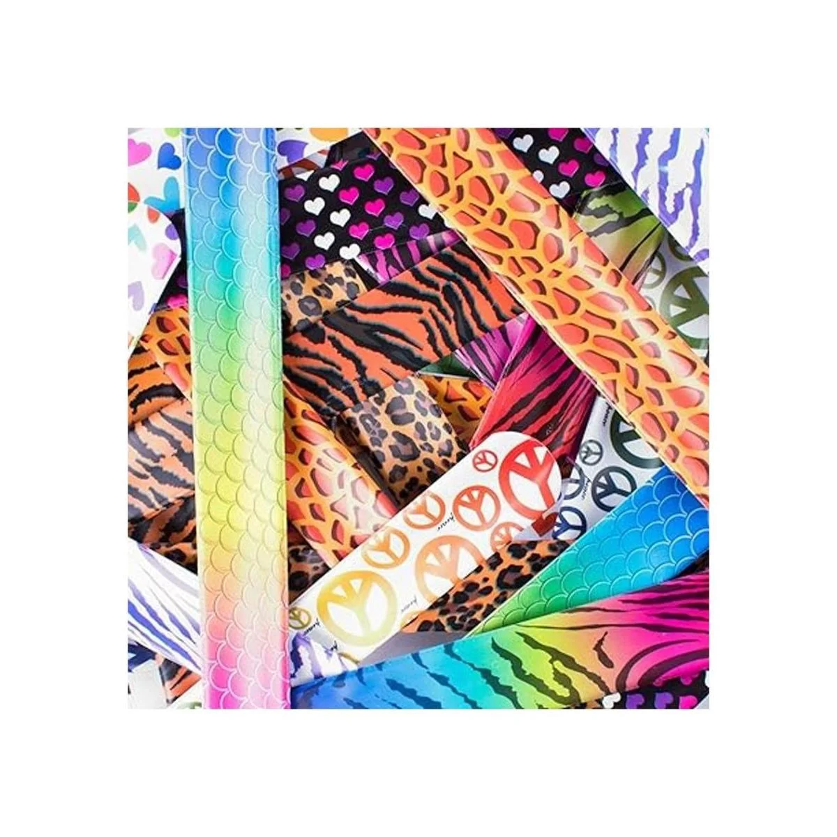 Hay muchos coloridos patrones intrincados e impresiones incluidas en cada juego. Incluyen cebra, guepardo, tigre, corazones y más en varios colores neón como rosa, amarillo, verde, naranja y azul. Estos son grandes artículos retro y grandes recuerdos de fiesta.