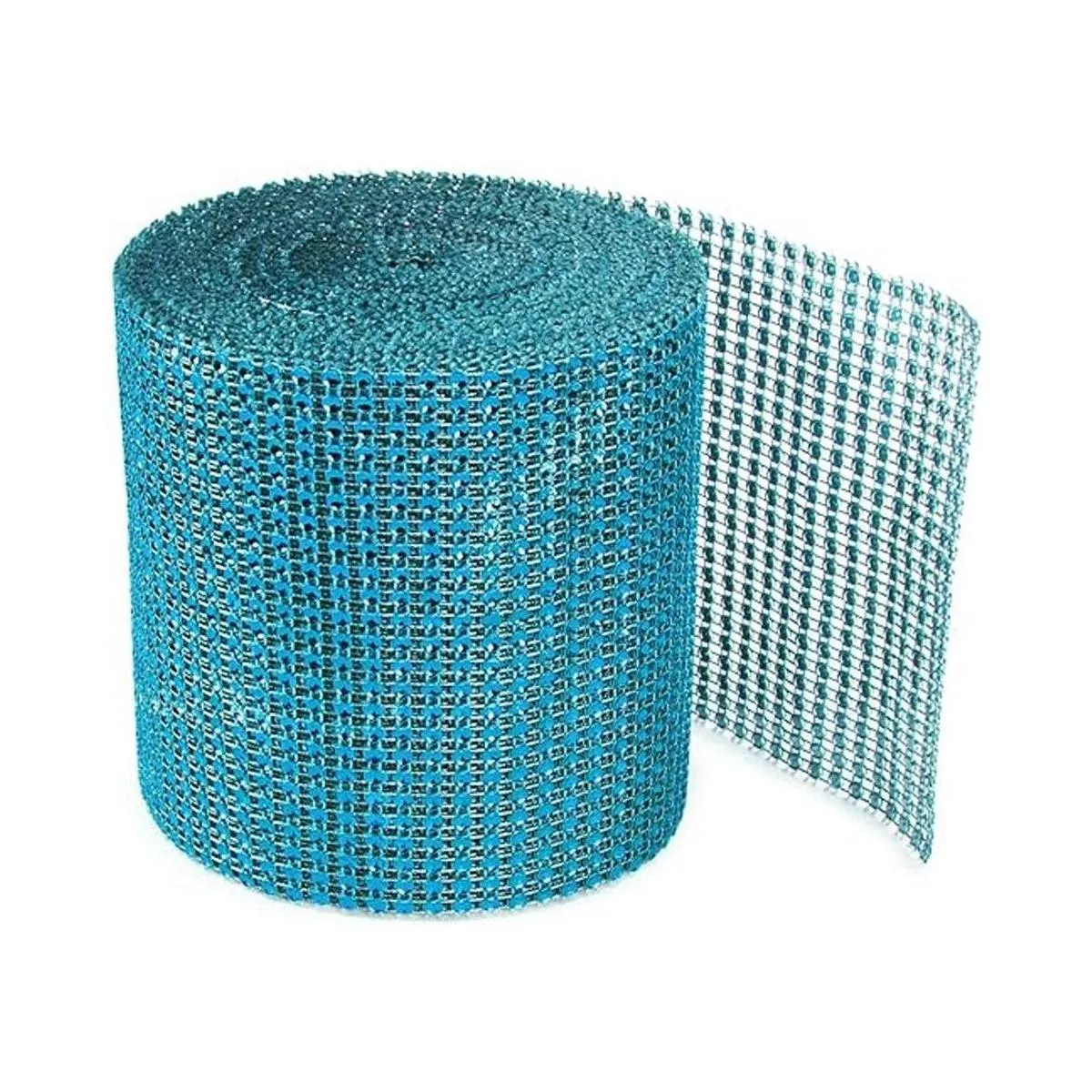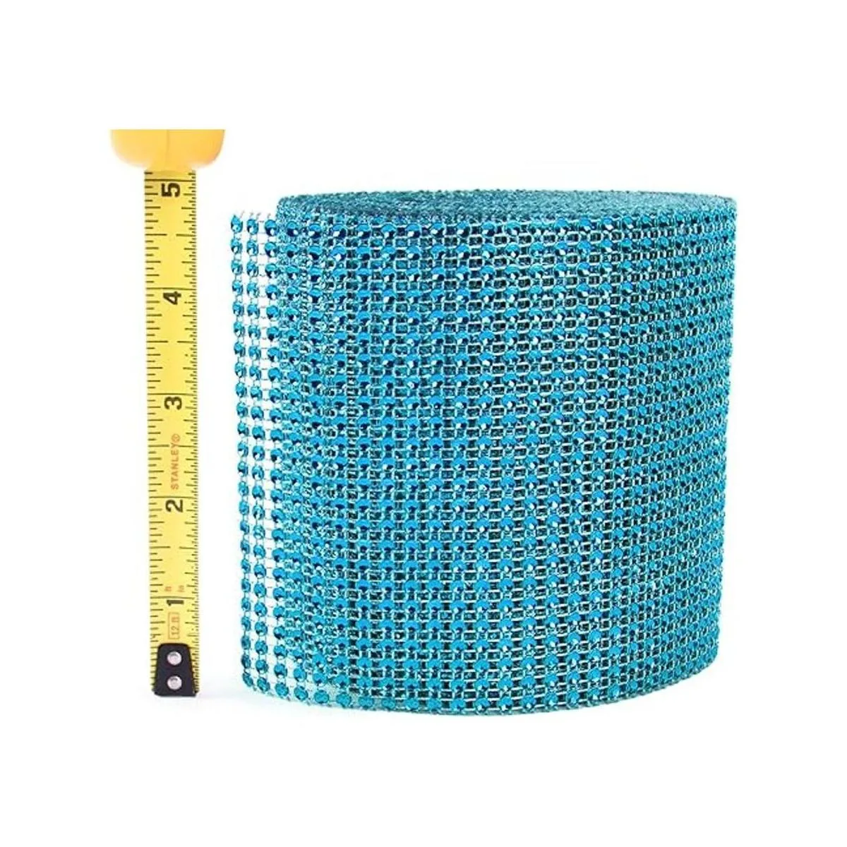 Super Z Outlet Rollo de cinta de malla decorativa estilo diamante de imitación turquesa 4.75 x 10 yardas, 24 filas, 1 rollo