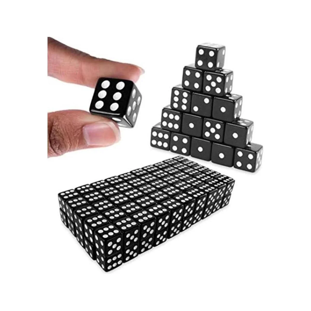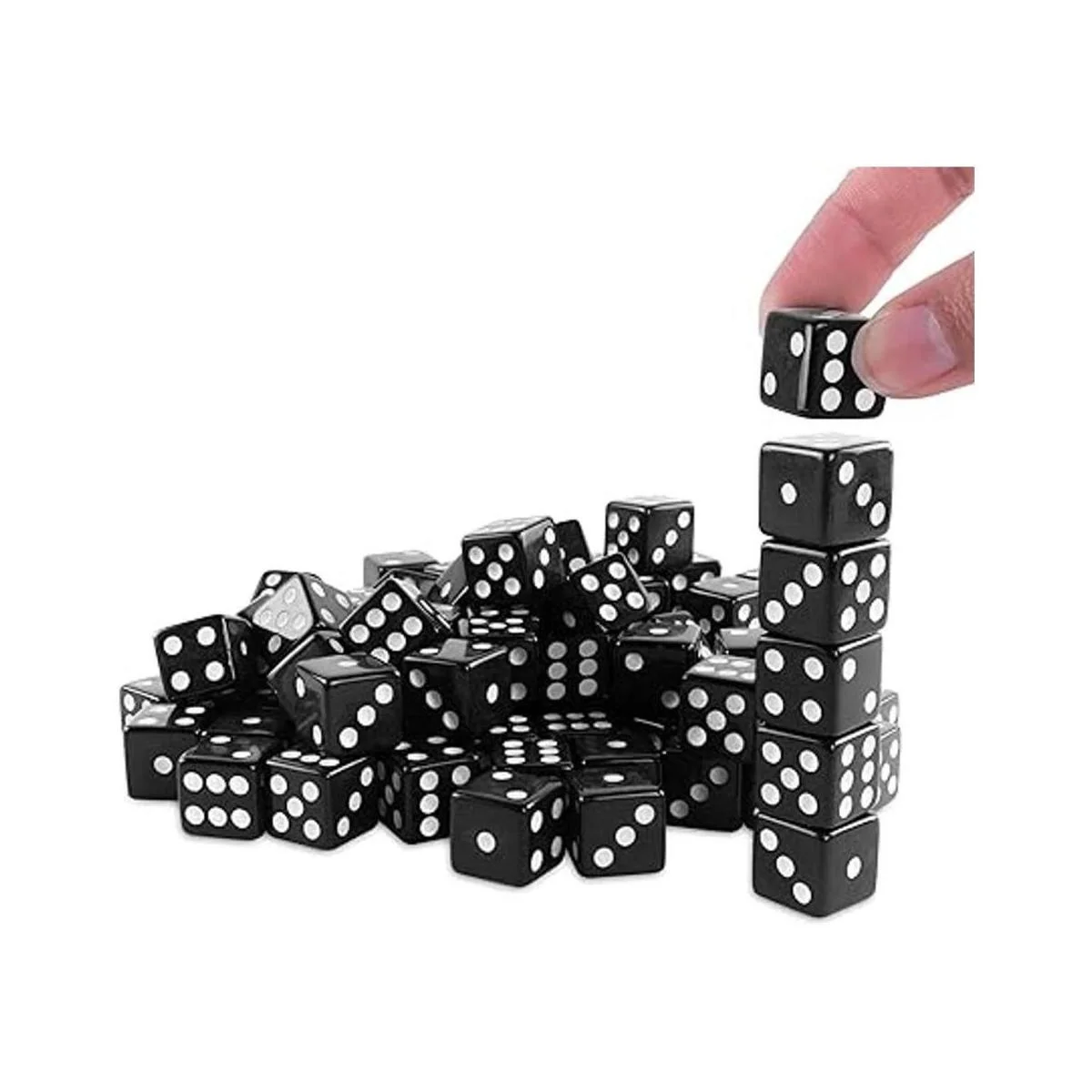 Super Z Outlet Standard 0.630 in dados negros con puntos blancos Pips para juegos de mesa, actividad, tema de casino, regalos de fiesta, regalos de juguete paquete de 100