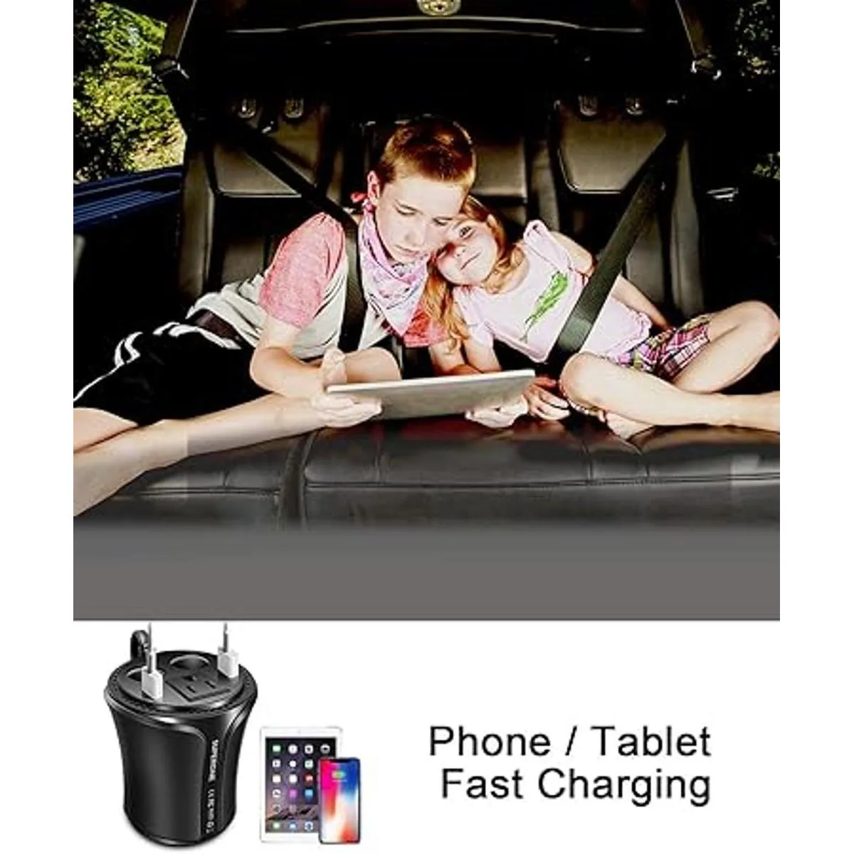 SUPERONE Inversor de corriente para automóvil de 150 W CC de 12 V a 110 V 120 V Adaptador de CA para automóvil Diseño 5 en 1 portavasos cargador doble USB para automóvil y 2 adaptadores de corriente para automóvil