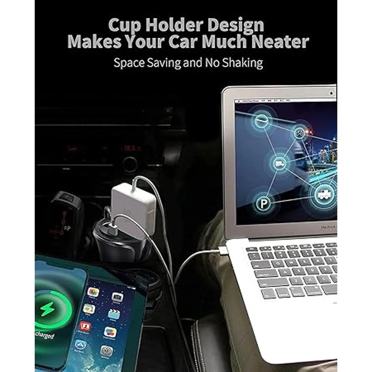 Diseño único de portavasos: superficie de plástico lisa y brillante con aspecto aerodinámico. El diseño del portavasos hace que tu coche sea mucho más ordenado. Ahorro de espacio y no se mueve.