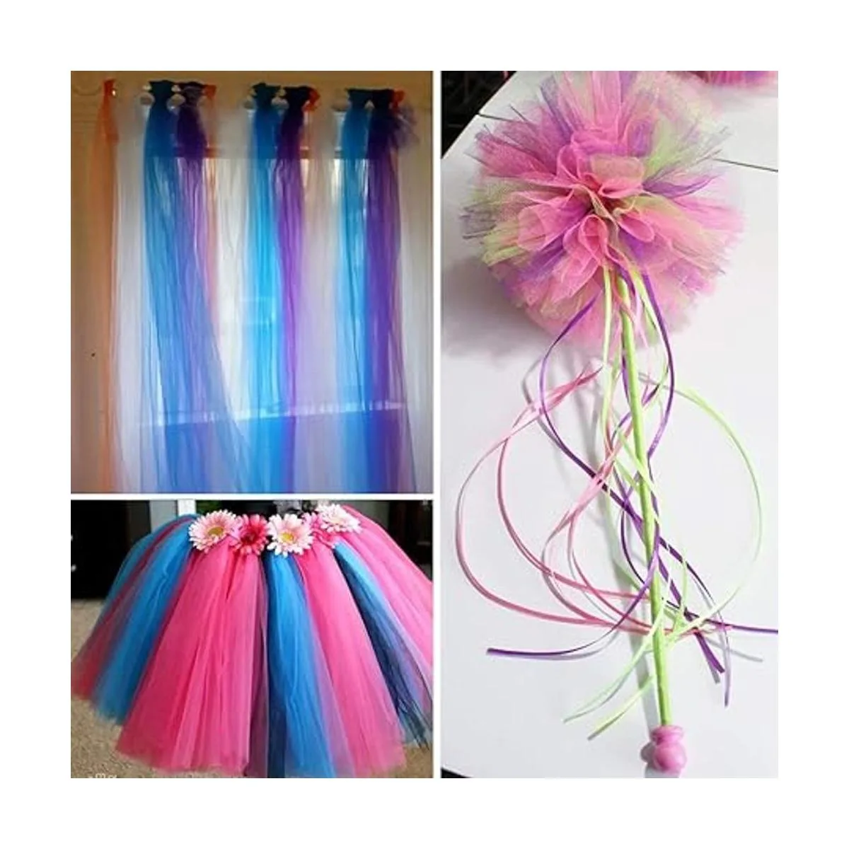 Cantidad: el paquete incluye 8 rollos de tul arcoíris tela de red de tul, 8 rollos de cinta de satén arcoíris, 12 diademas de plástico lisas sin dientes y 1 rollo de bandas elásticas anchas para coser blanco de 0.7 pulgadas de ancho x 2 yardas