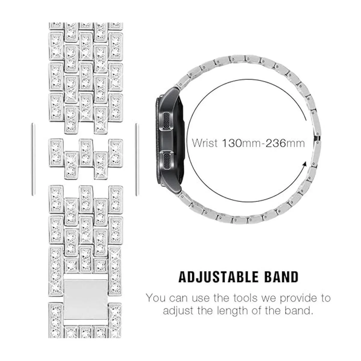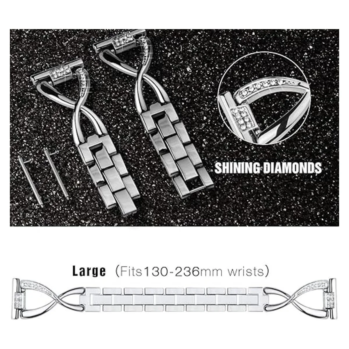 Diseño artístico e informal: el diseño único con diamantes de imitación de joyería artificial finos incrustados hace que la correa sea más brillante, lujosa, hermosa, exquisita y avanzada, que fue creada con un compañero ideal para mujeres que buscan una correa de reloj moderna, asequible e informal que se mantendrá popular durante muchas estaciones y lugares.